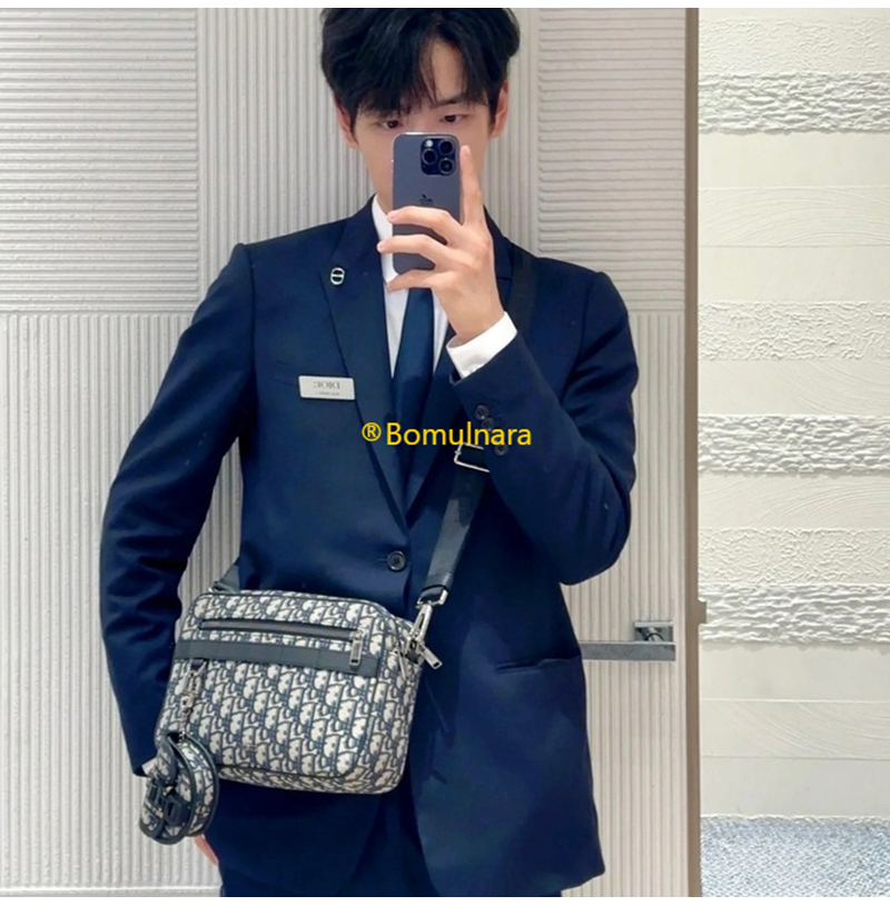[스페셜오더]DIOR-1ESPO 디올 네이비 블루 CD Diamond 캔버스 사파리 메신저 백 22CM