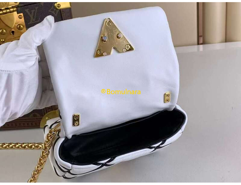 [스페셜오더]LOUIS VUITTON-M22890 루이비통 화이트/블랙 패딩 램스킨 GO-14 MM 핸드백 23cm 가격 : 450,000원