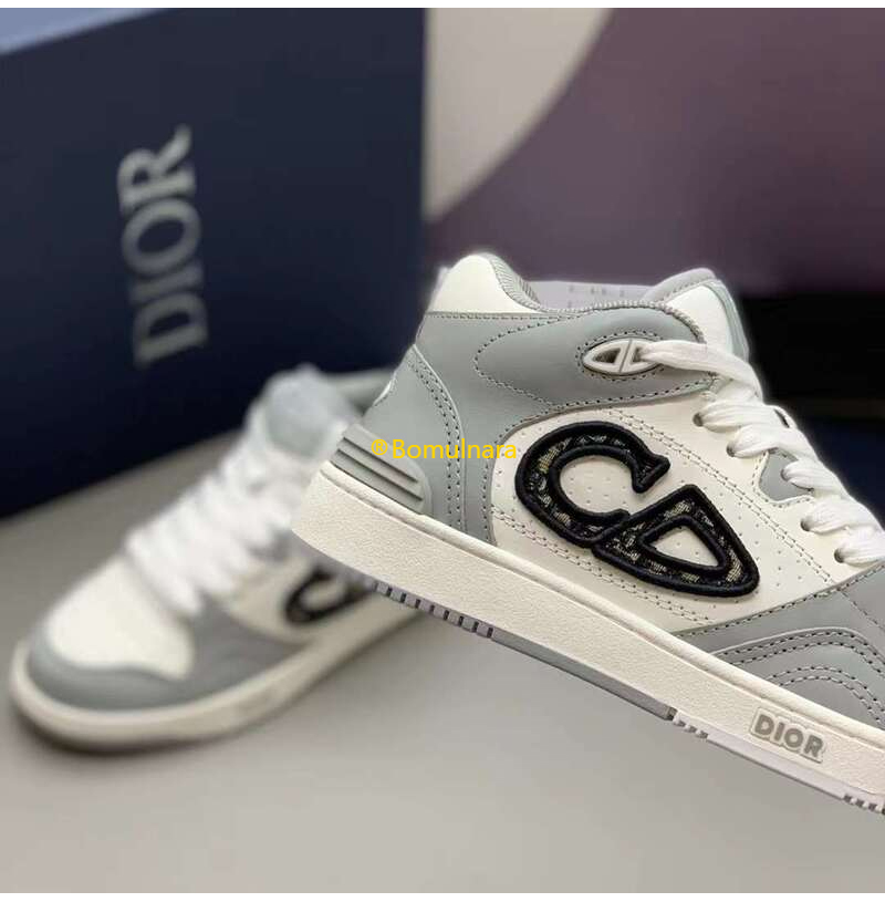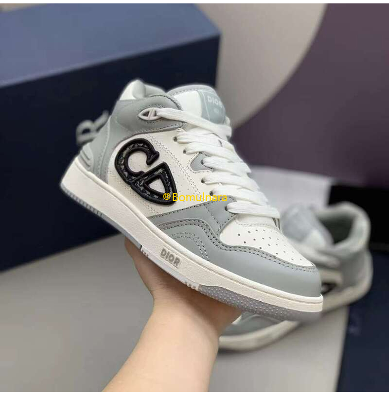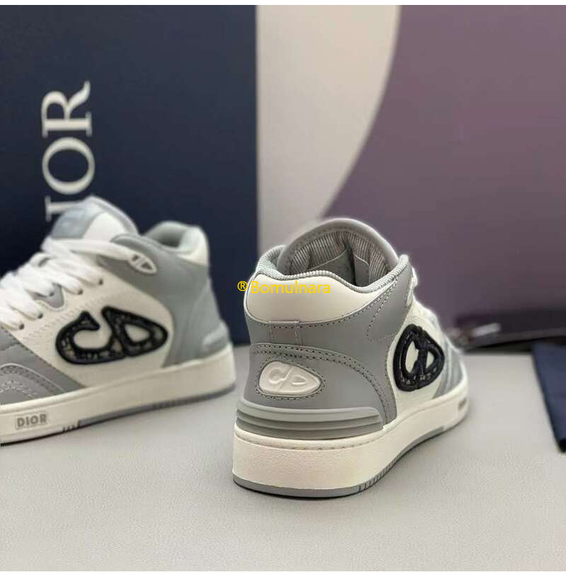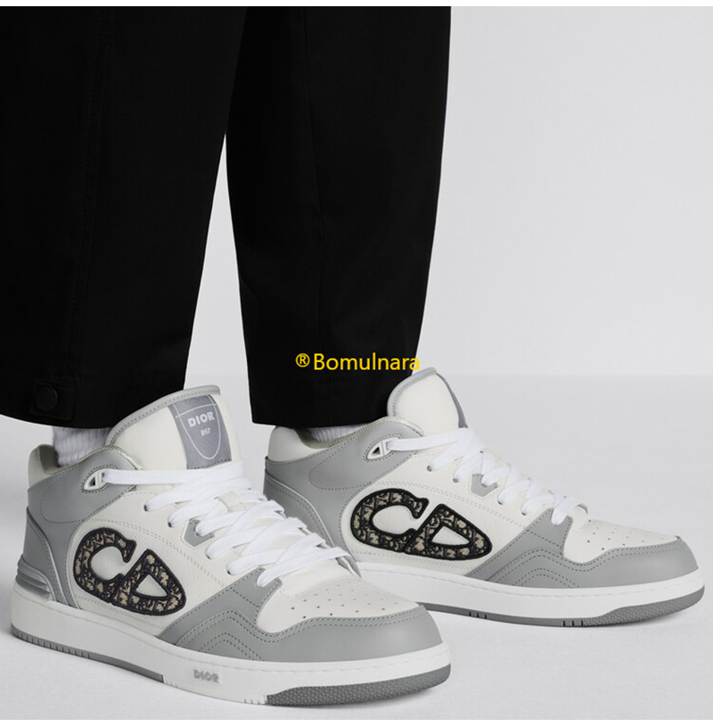 DIOR-3SH141 디올 그레이/화이트 카프스킨 B57 미드탑 운동화 남녀공용