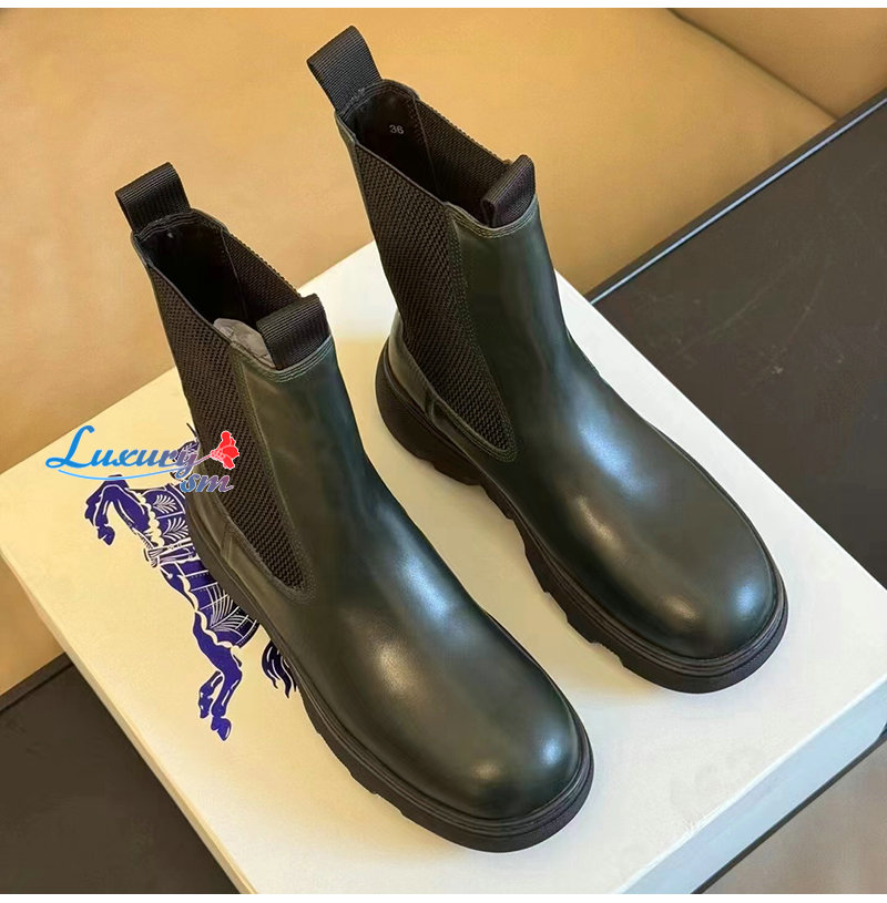 BURBERRY-80776901 버버리 그린 레더 크리퍼 첼시 부츠 여성용