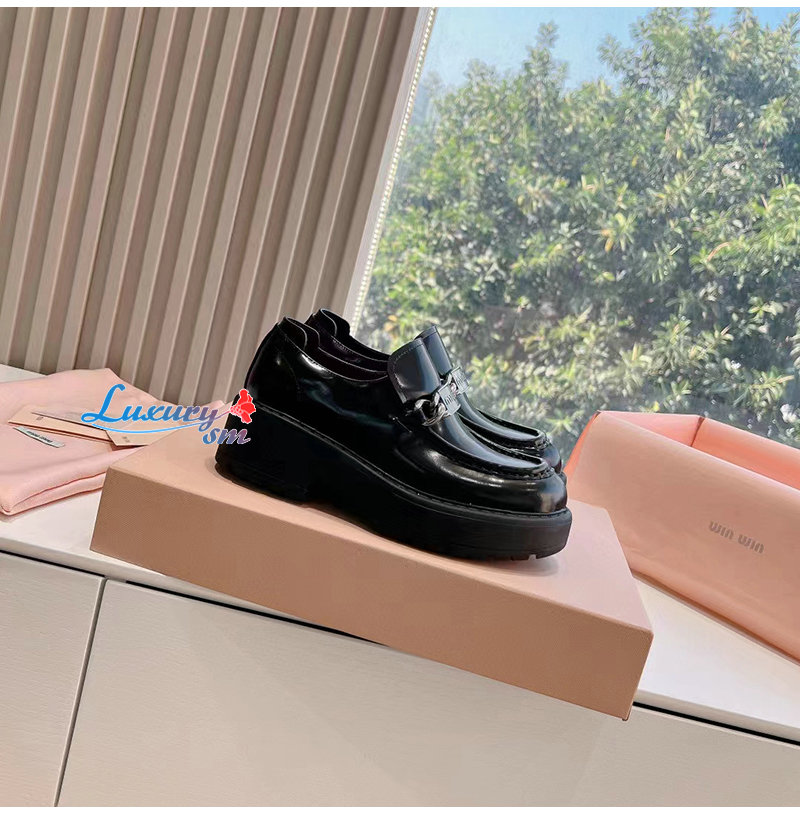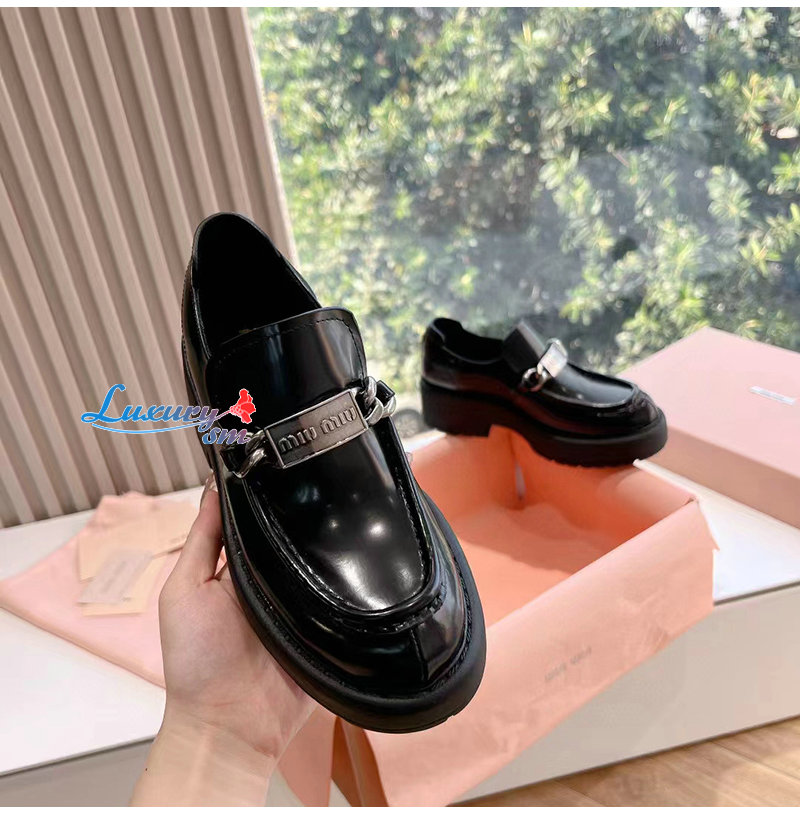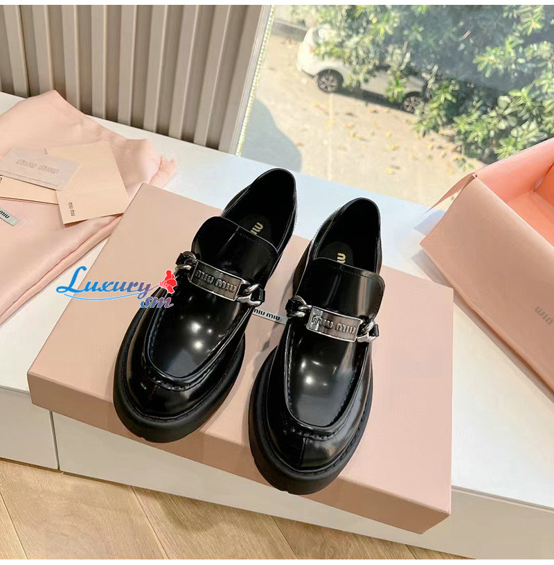 MIUMIU-5D784D 미우미우 블랙 가죽 로퍼 여성용