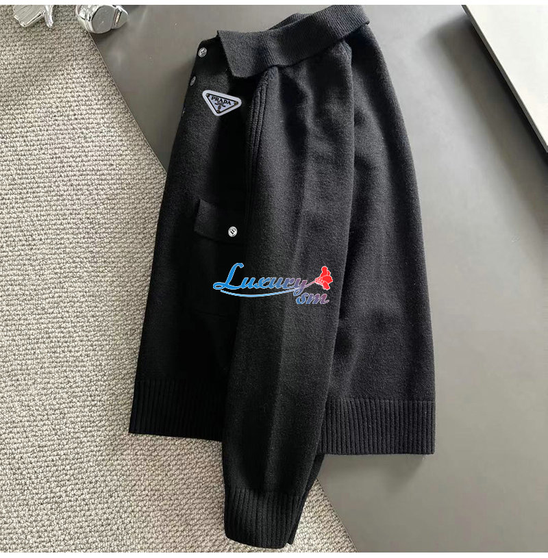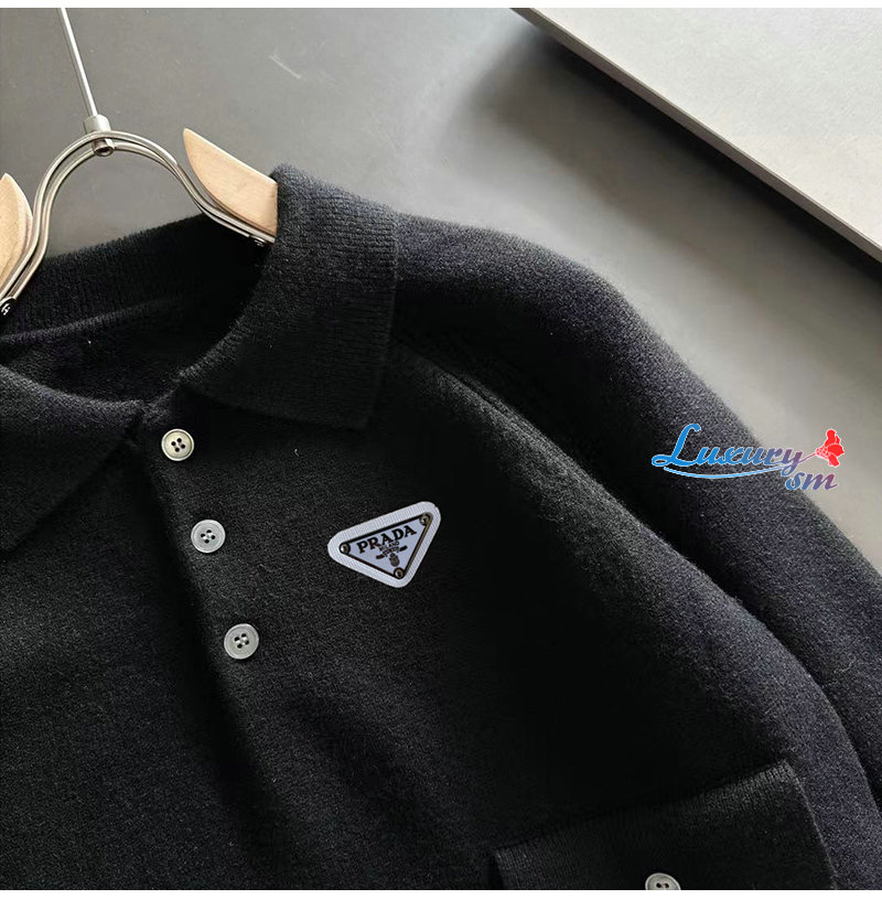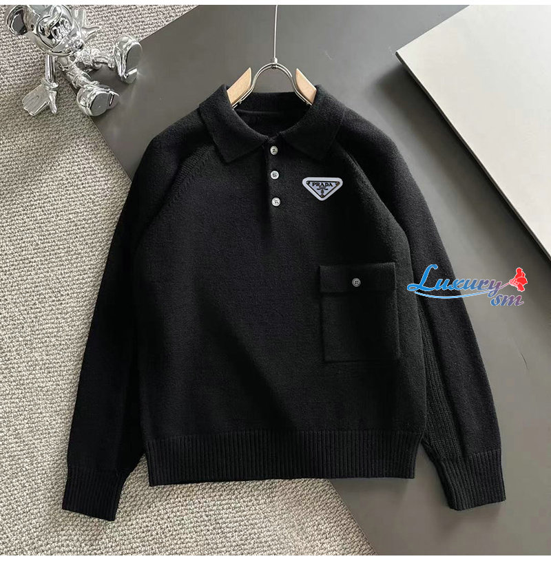 PRADA-12156 프라다 블랙 트라이앵글 로고 스웨터
