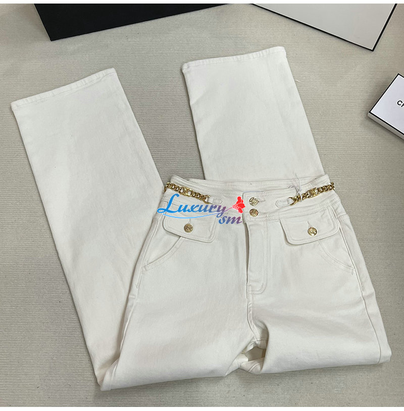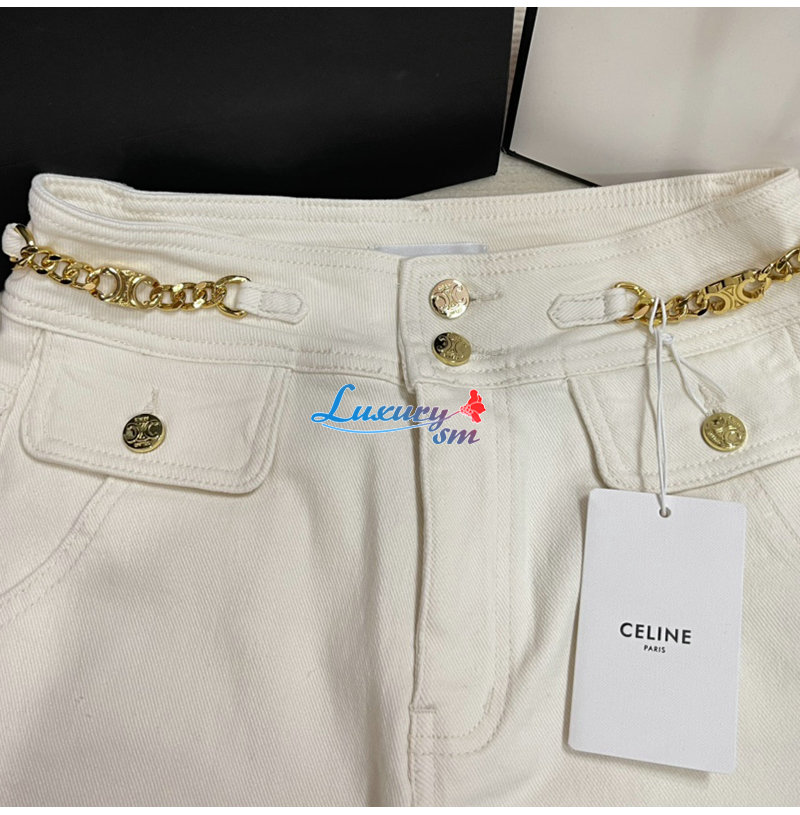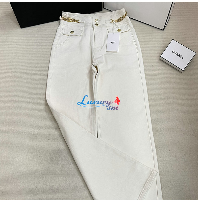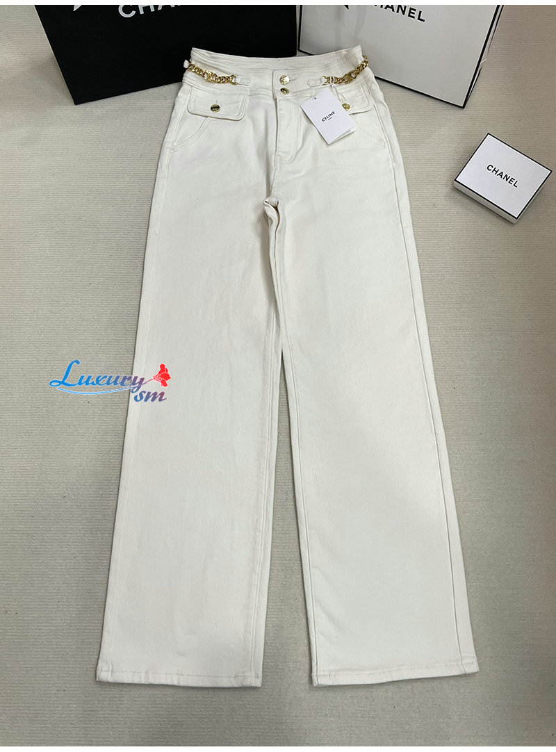 CELINE-12161 셀린느 화이트 메탈 체인 장식 청바지 여성용