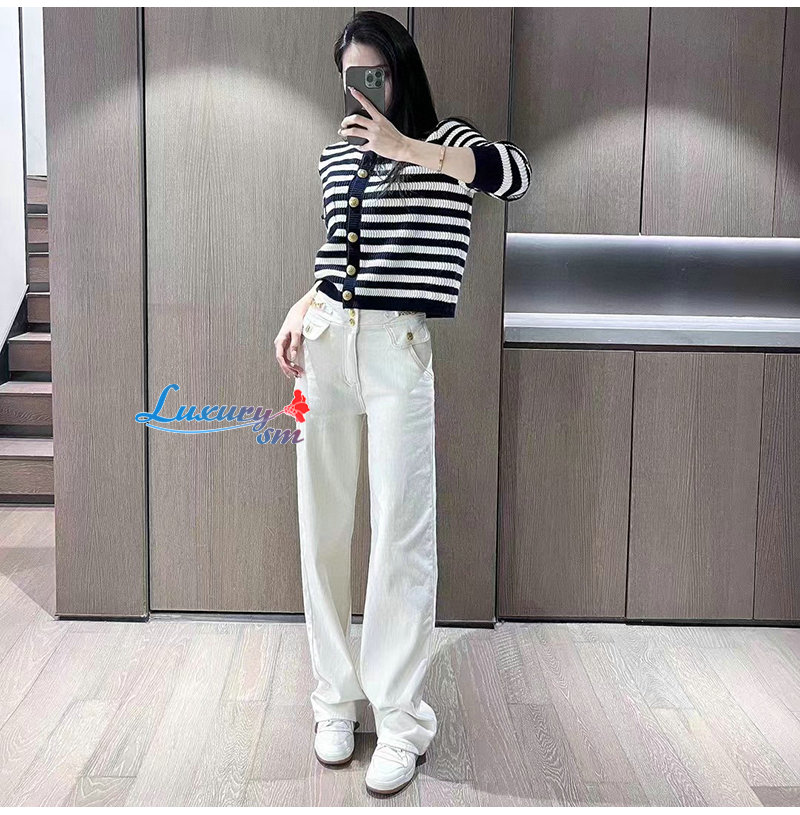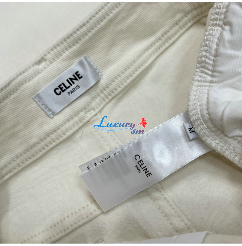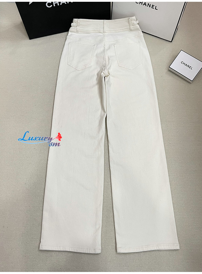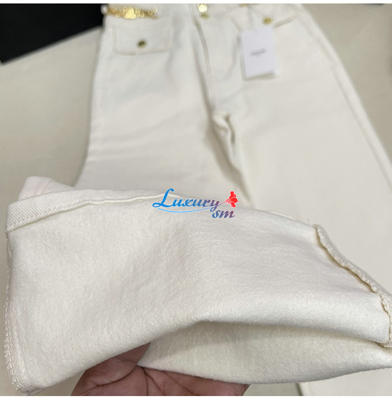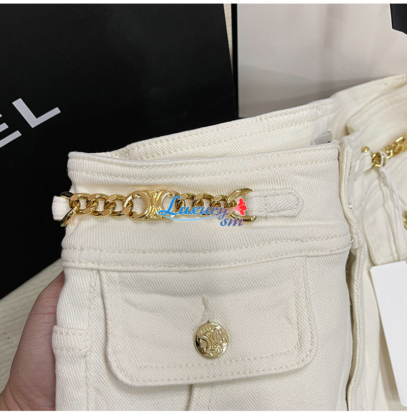 CELINE-12161 셀린느 화이트 메탈 체인 장식 청바지 여성용