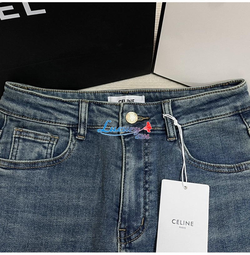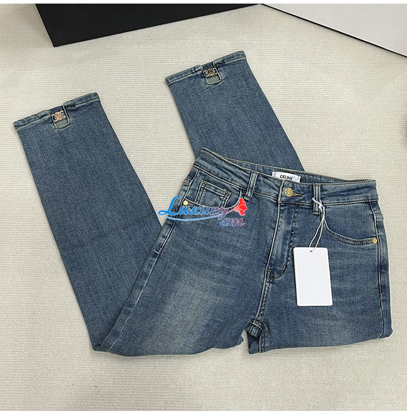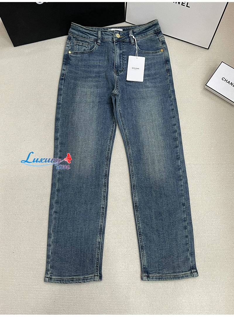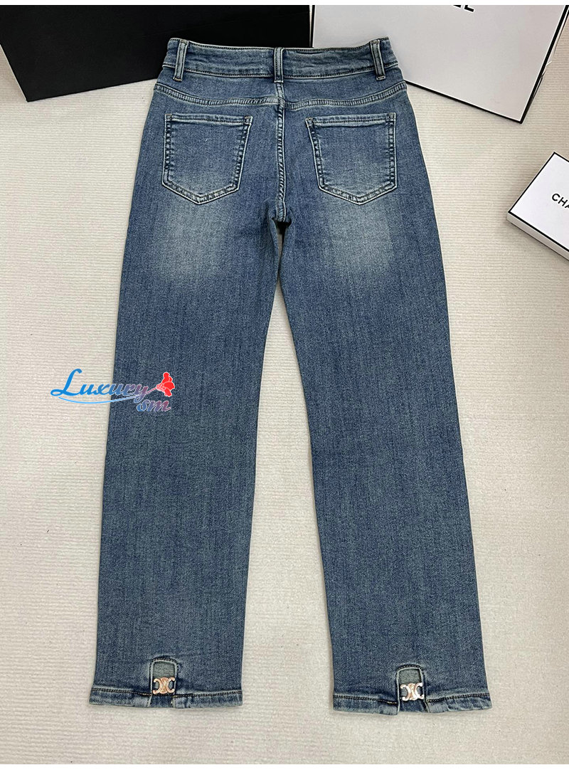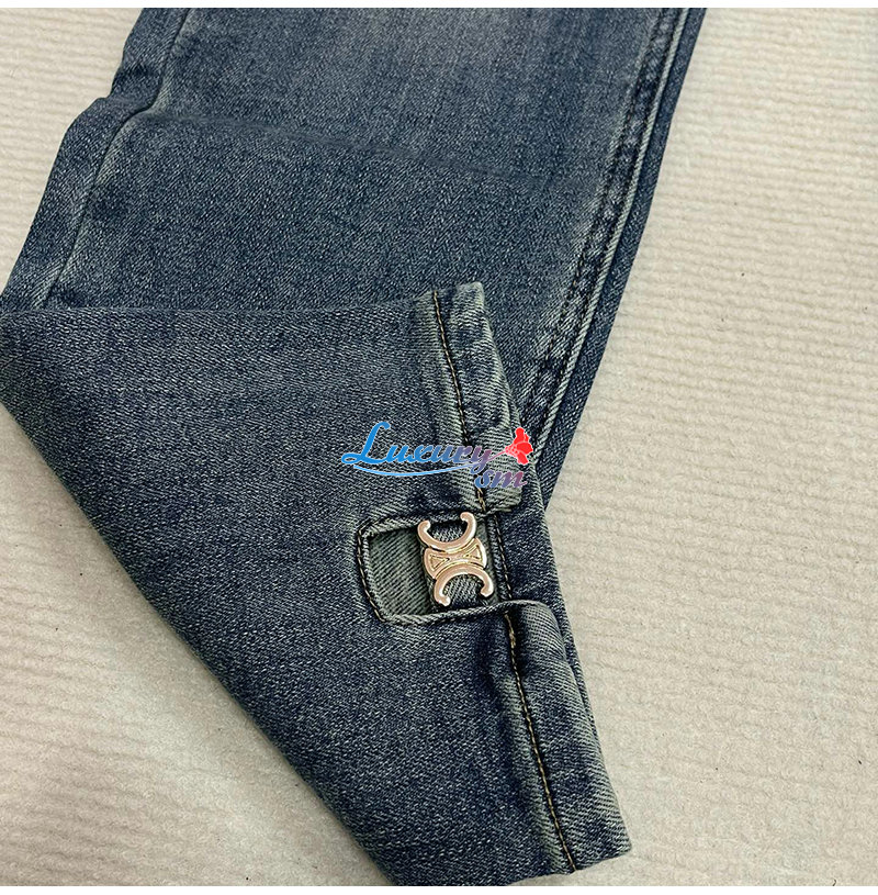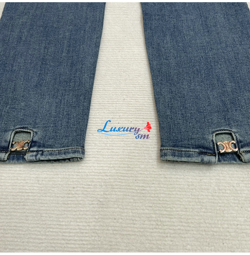 CELINE-12162 셀린느 블루 메탈 로고 장식 청바지 여성용