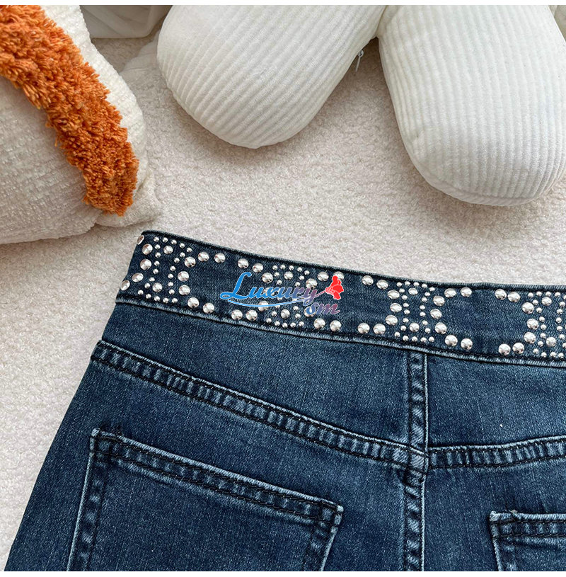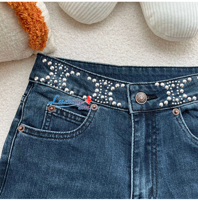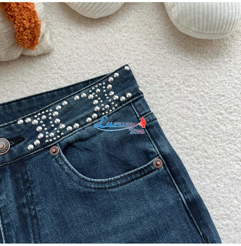 CELINE-12168 셀린느 블루 스터드 장식 청바지