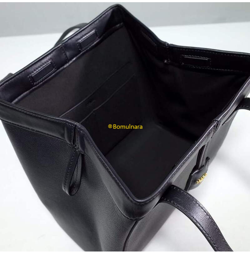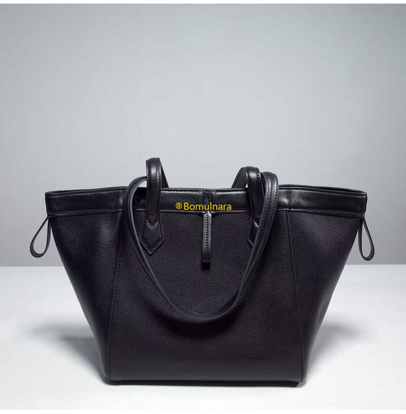 블랙 풀 그레인 가죽 소재 미디엄 오리가미 백.