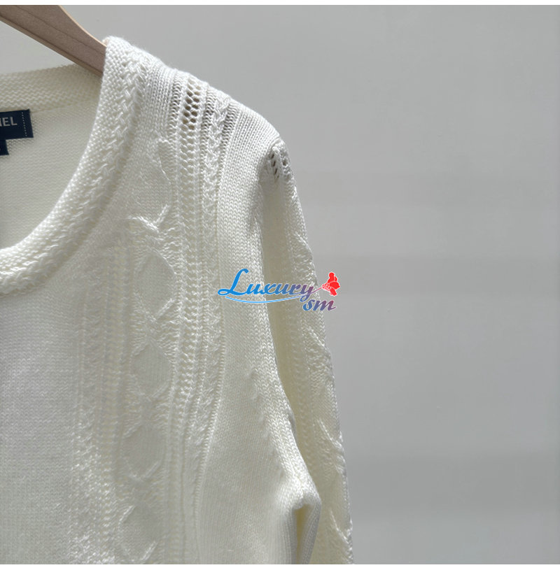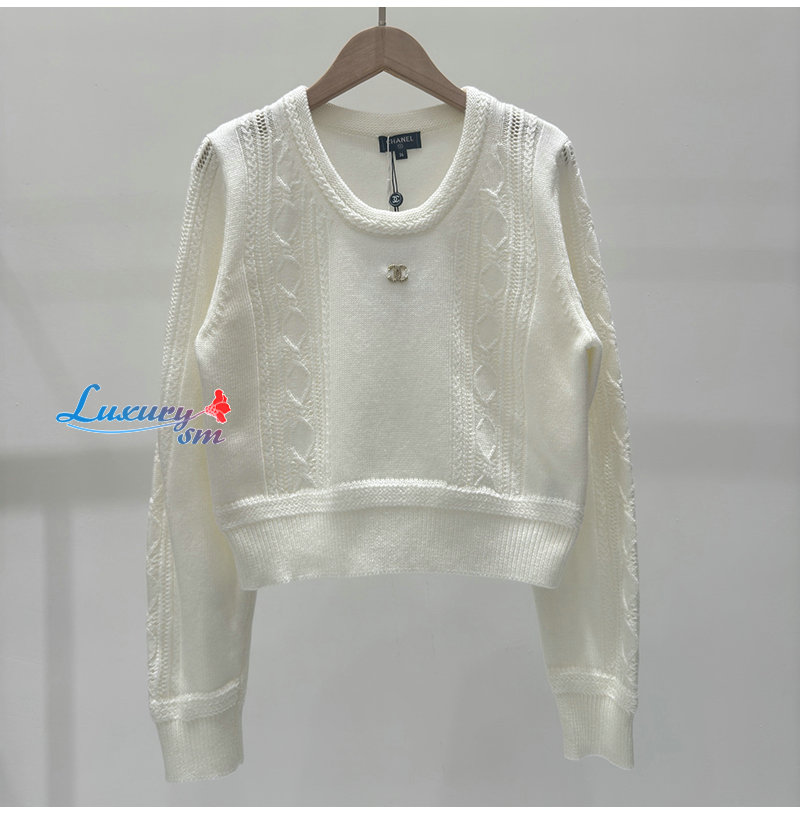 CHANEL-123011 샤넬 화이트 CC 로고 장식 스웨터 여성용