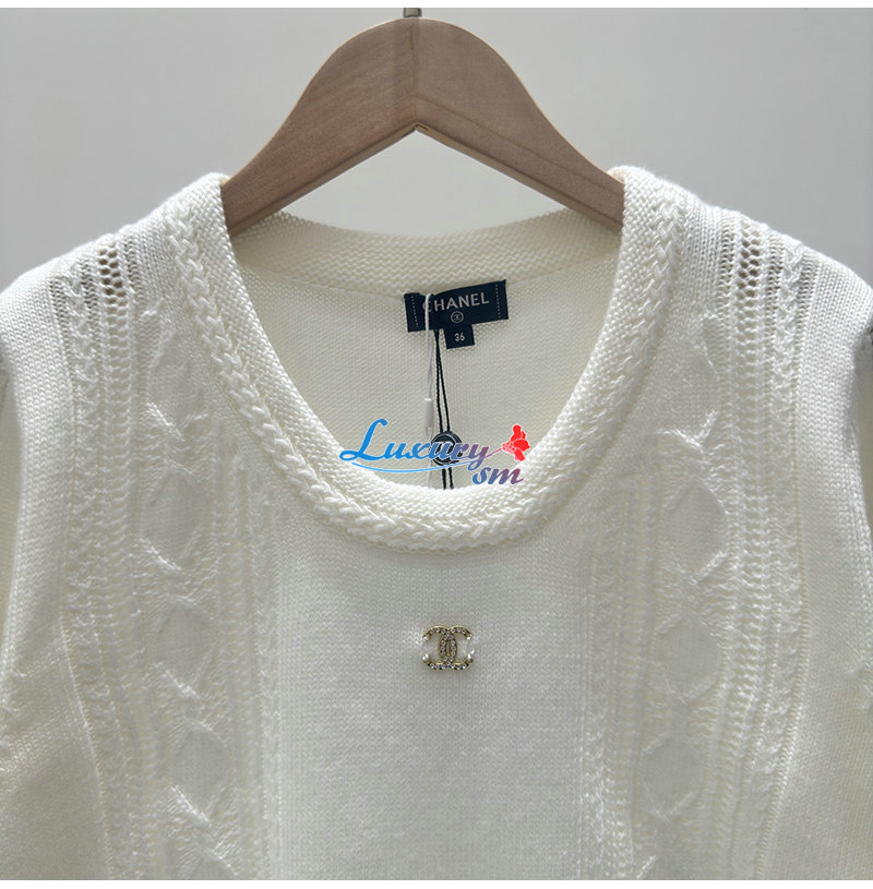 CHANEL-123011 샤넬 화이트 CC 로고 장식 스웨터