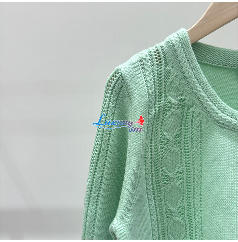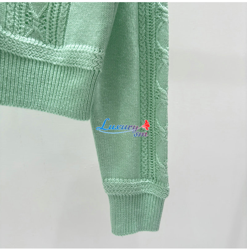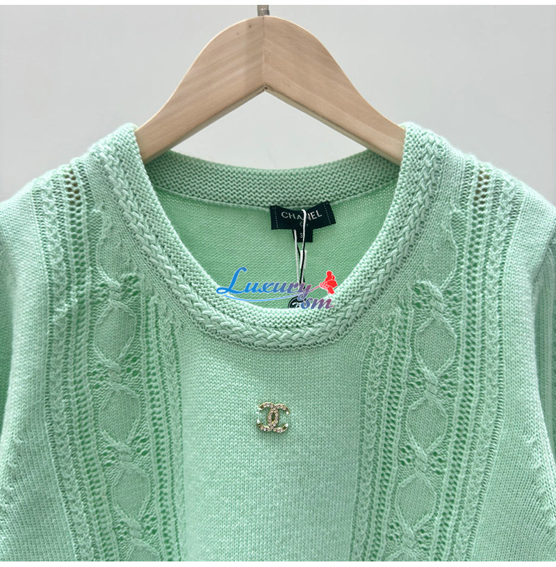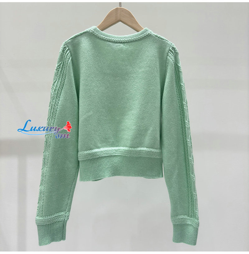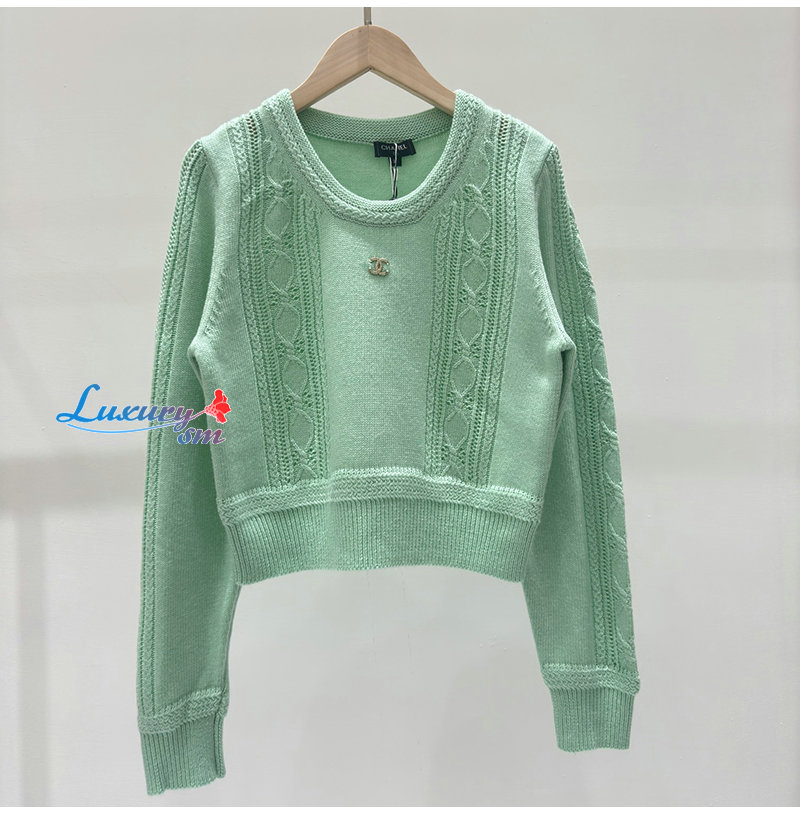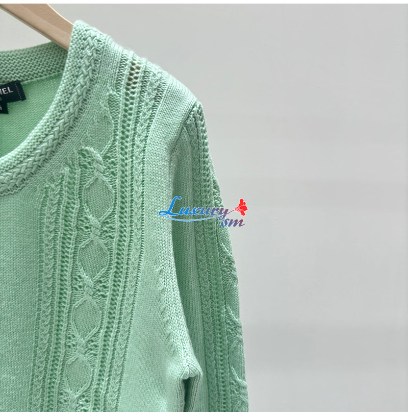 CHANEL-123012 샤넬 민트 그린 CC 로고 장식 스웨터 여성용
