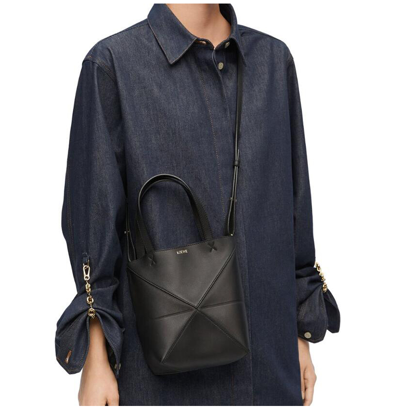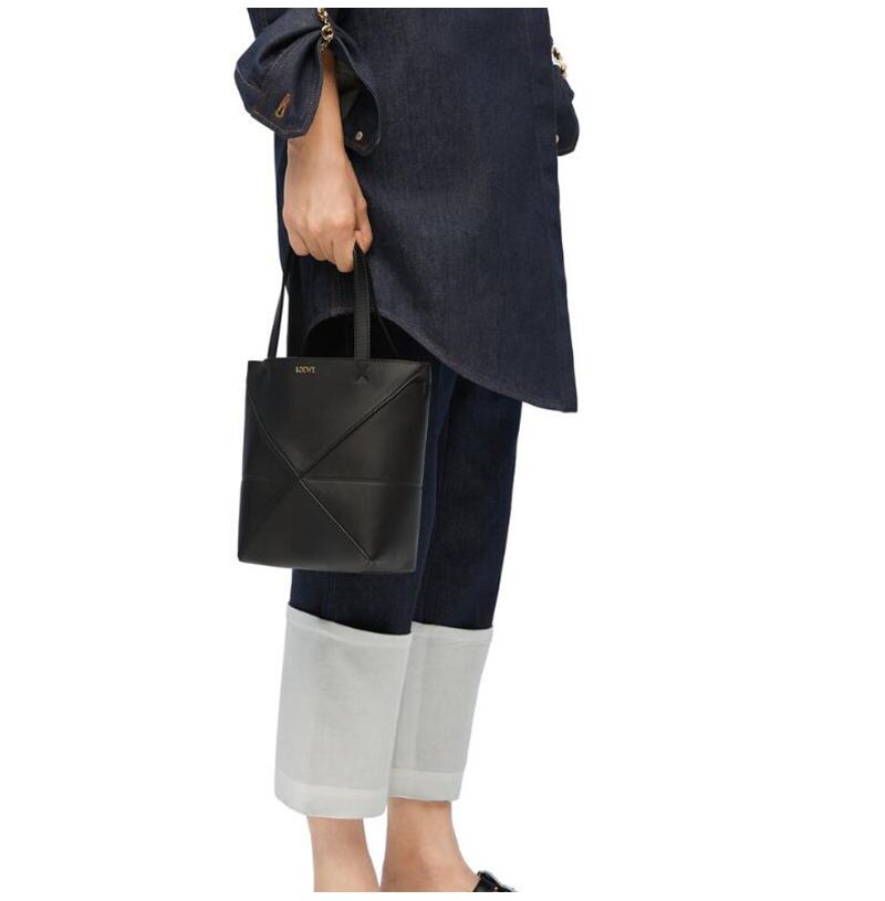 [스페셜오더]LOEWE-66028 로에베 블랙 샤이니 카프스킨 퍼즐 폴드 미니 토트 백 16cm