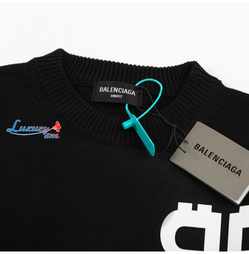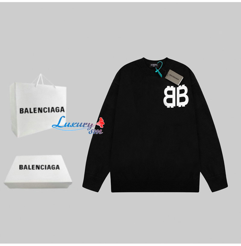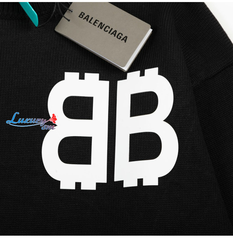 BALENCIAGA-01044 발렌시아가 블랙 BB 프린트 장식 스웨터 남성용