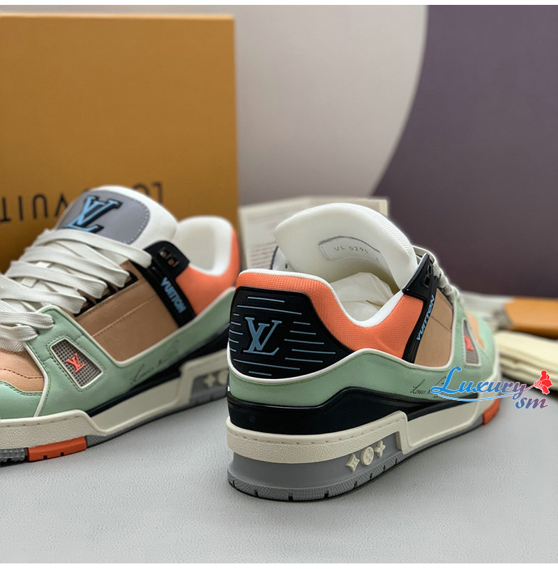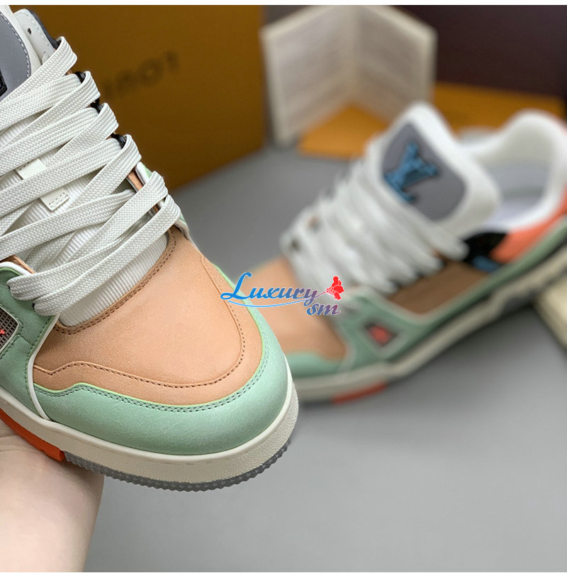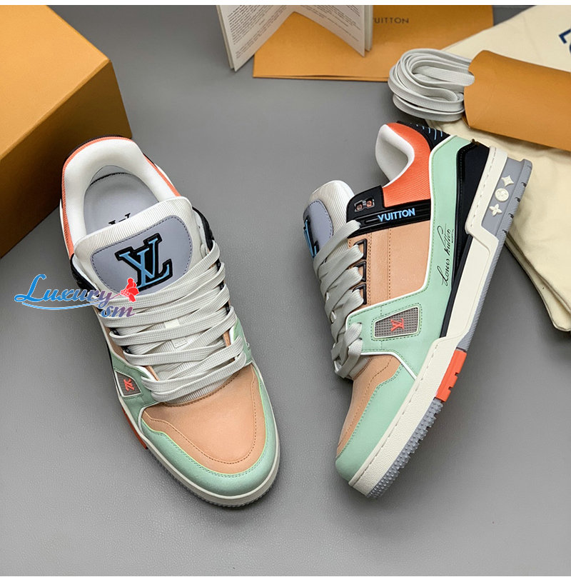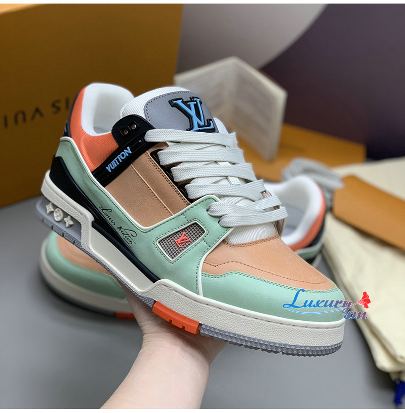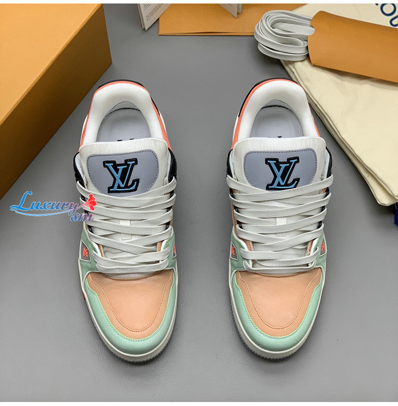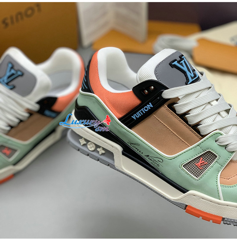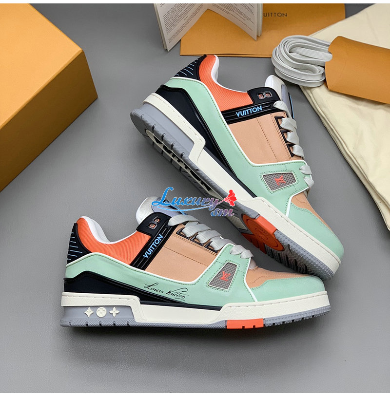 [스페셜오더]LOUIS VUITTON-1A8WG1 루이비통 그린/오렌지 모노그램 그레인 송아지 가죽 LV 트레이너 스니커즈