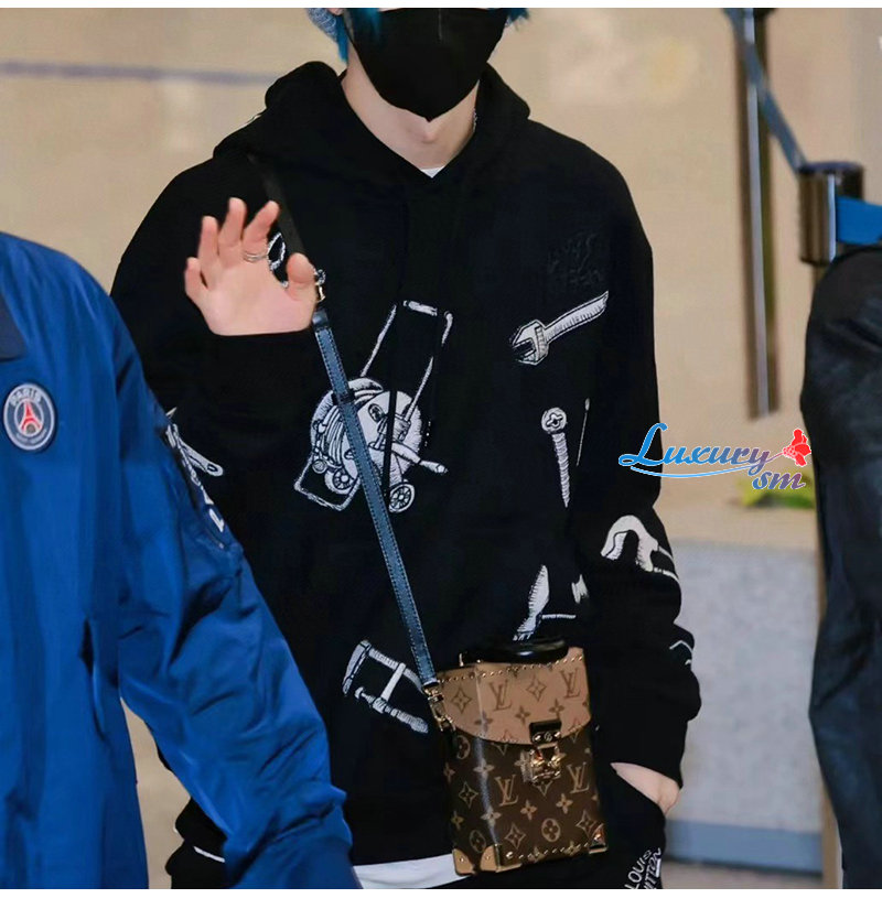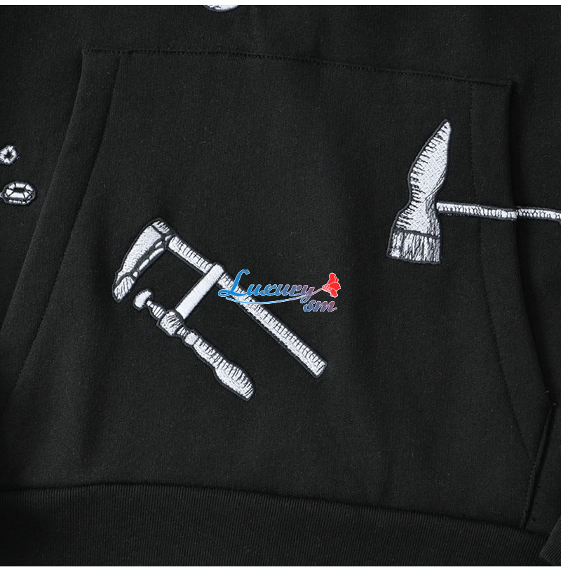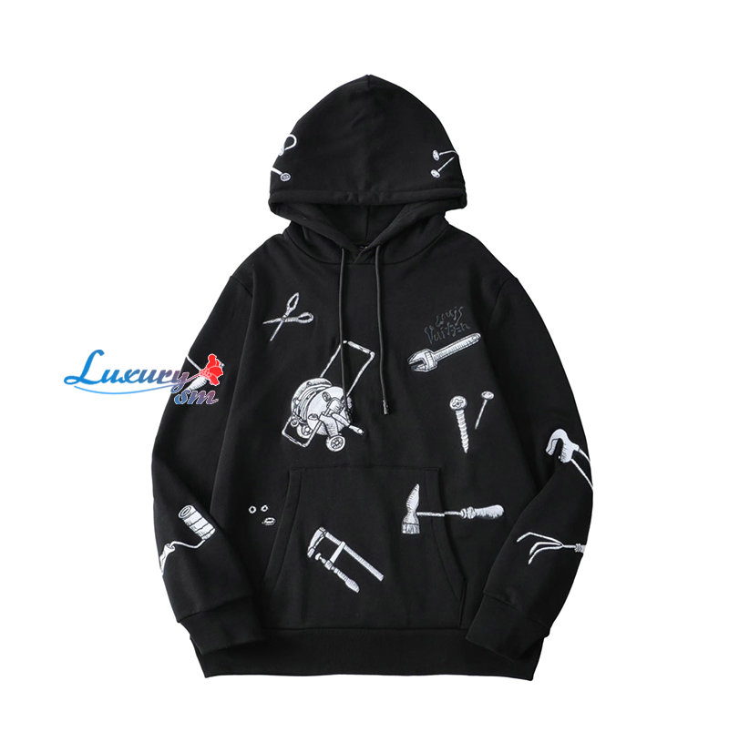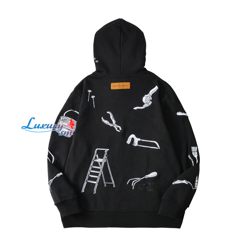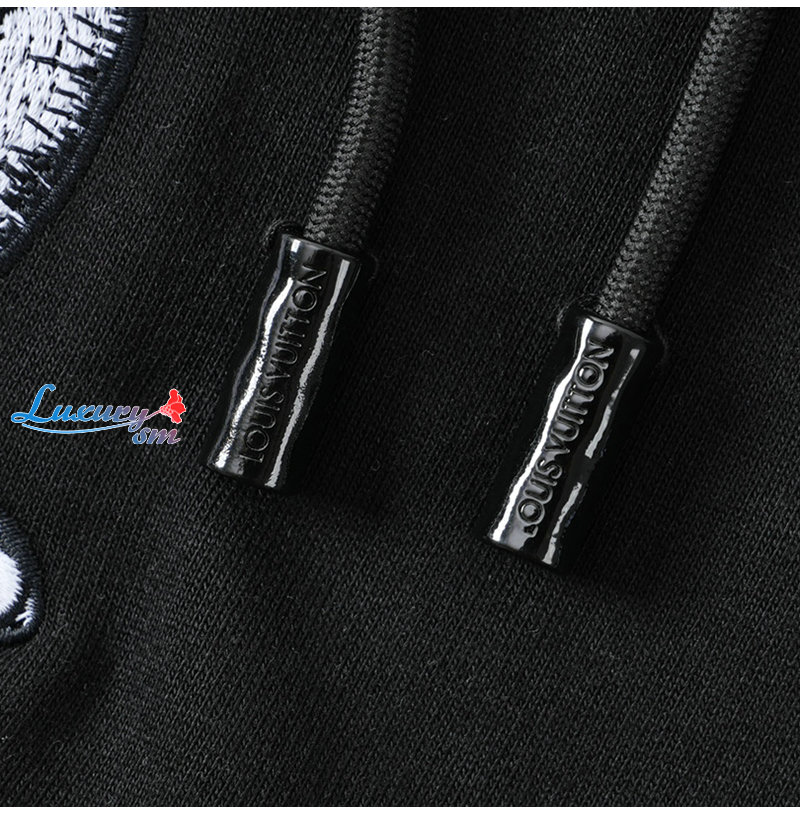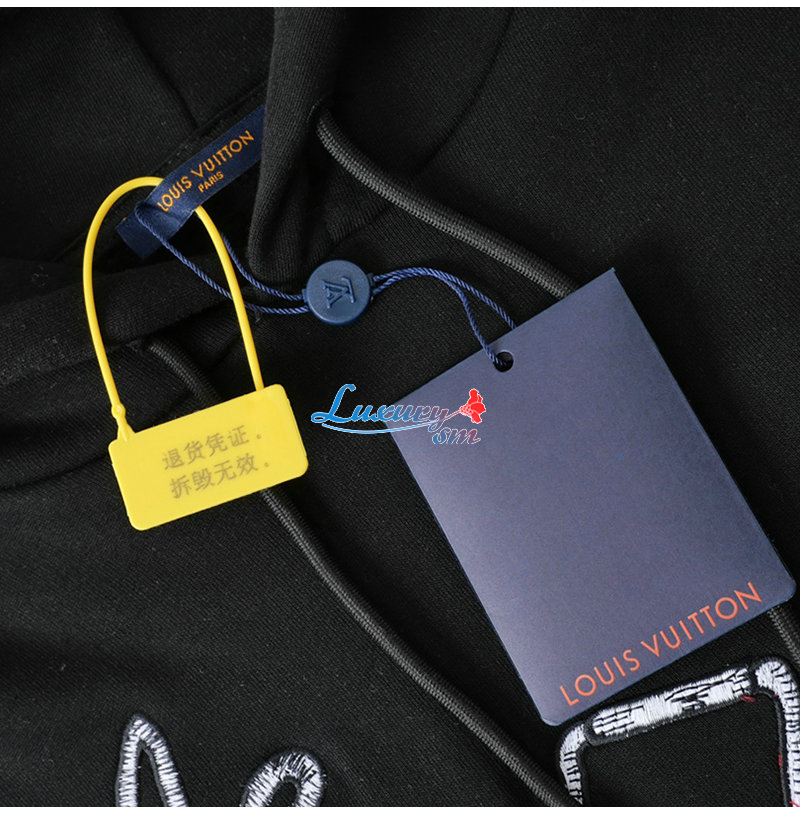 LOUIS VUITTON-11074 루이비통 블랙 아플리케 장식 후드 티셔츠 남여공용