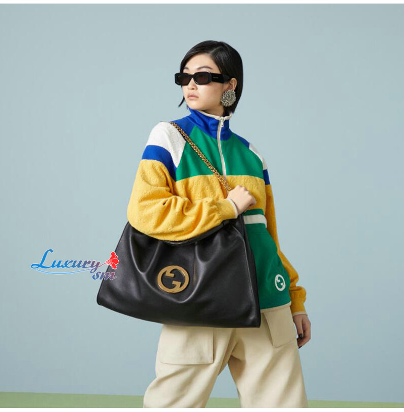 탑 핸들과 체인 숄더 스트랩이 있는 구찌 블론디