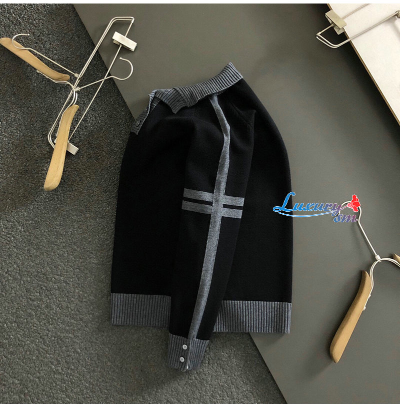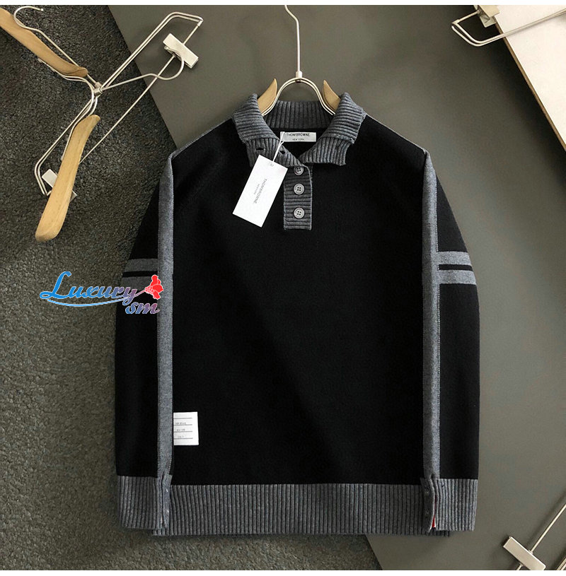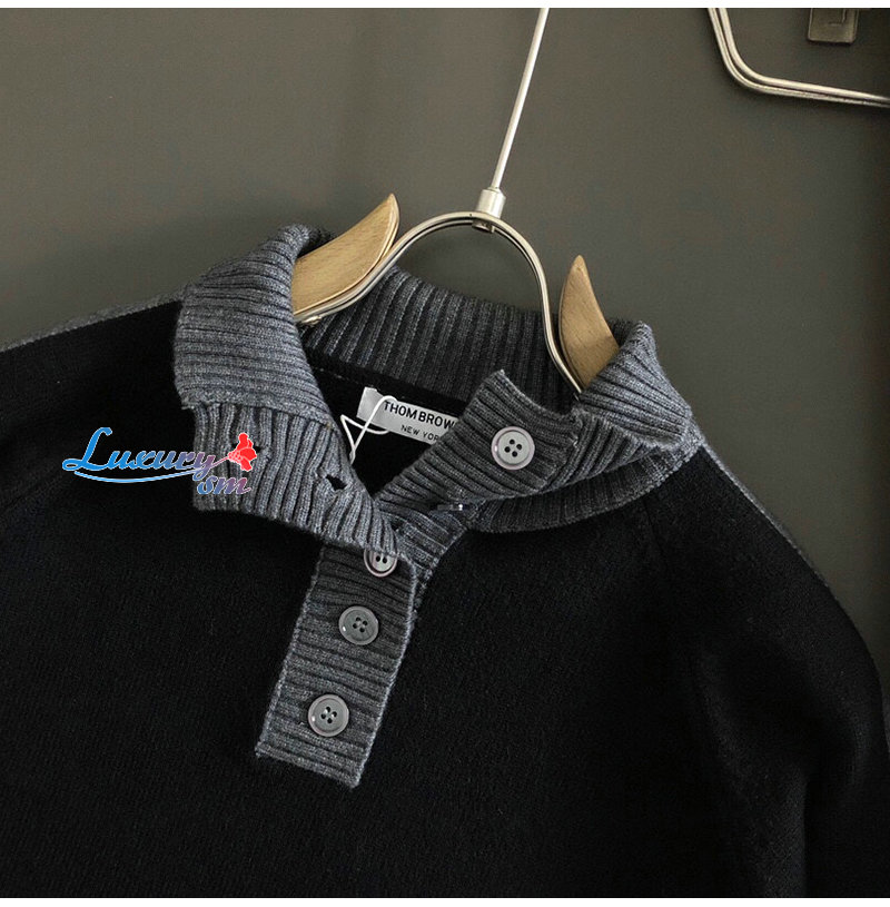 THOM BROWNE-01143 톰 브라운 블랙/그레이 니트 코튼 스웨터 남성용