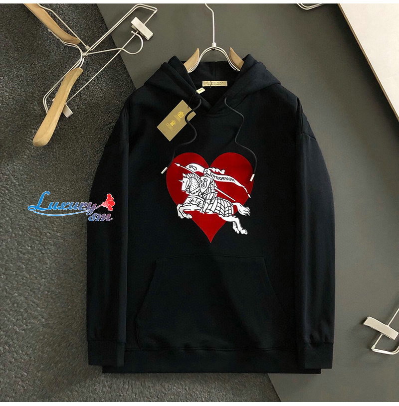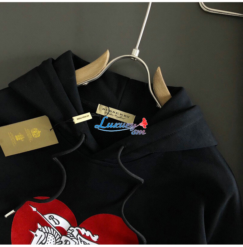 BURBERRY-01155 버버리 블랙 아플리케 장식 후드 티셔츠 남성용