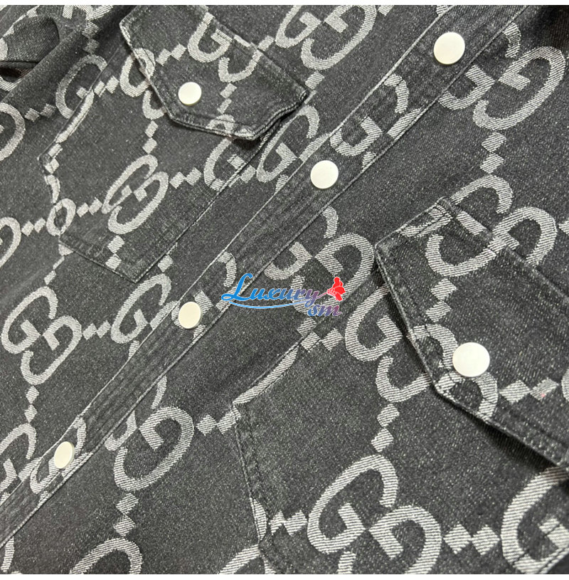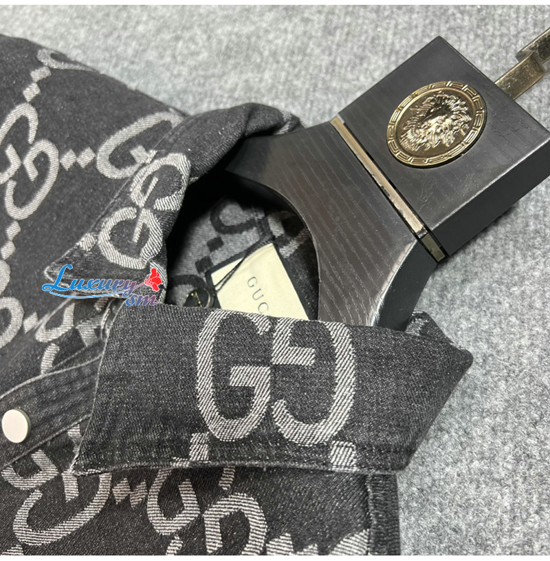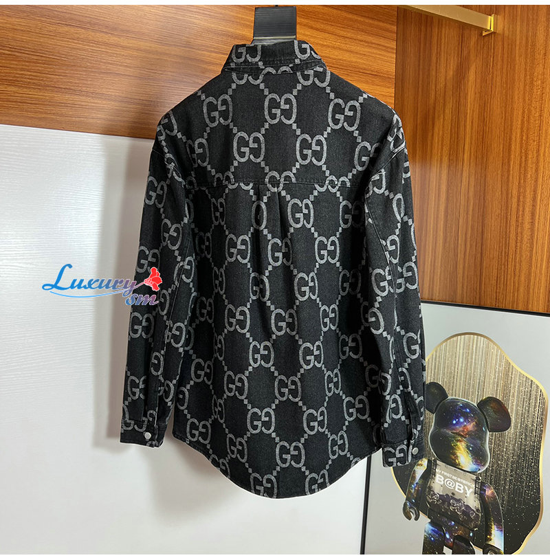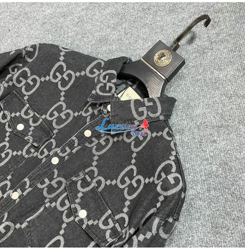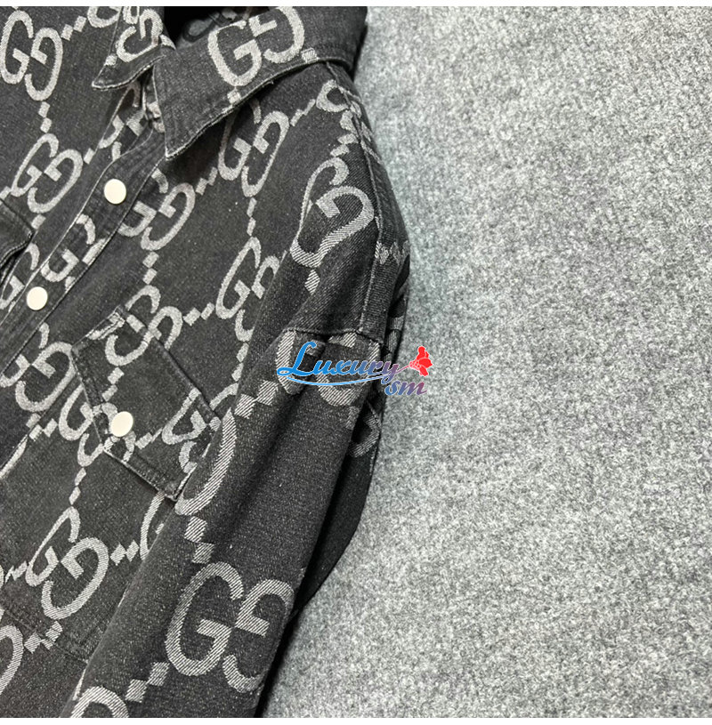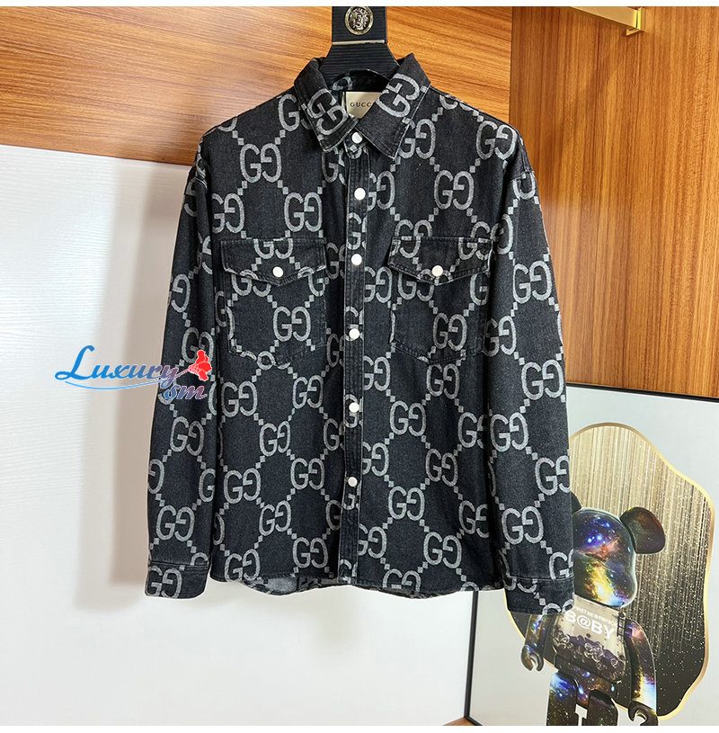 GUCCI-012214 구찌 차콜 그레이 점보 GG 데님 셔츠 남성용