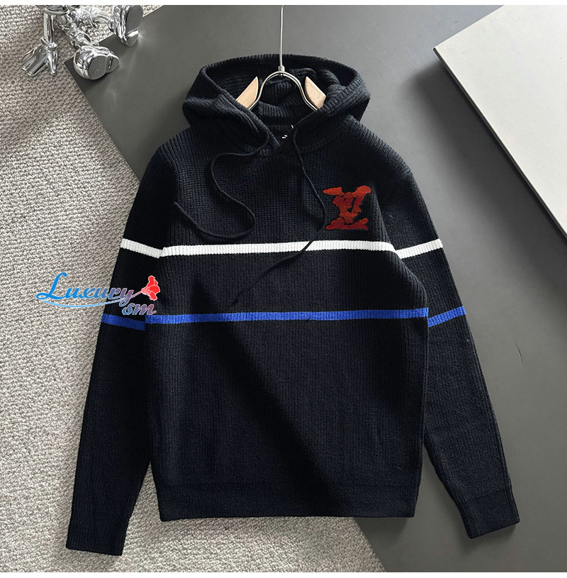 LOUIS VUITTON-011220 루이비통 블랙 스트라이프 장식 후드 스웨터 남성용