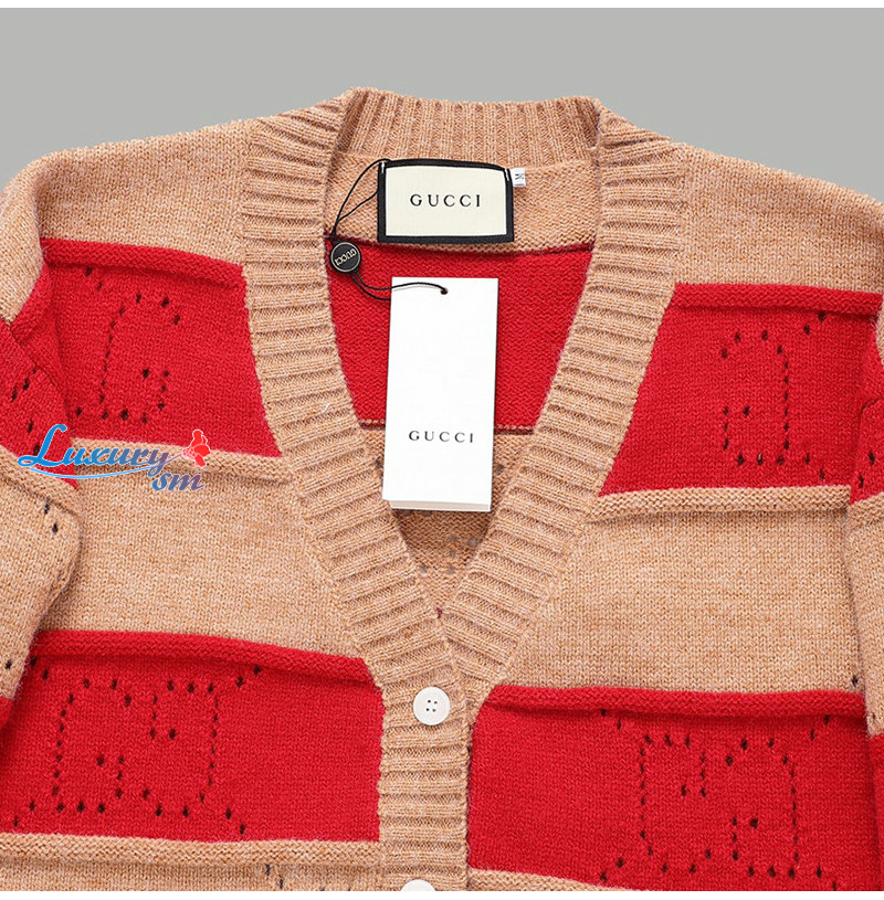 GUCCI-012413 구찌 베이지/레드 니트 코튼 가디건 남여공용
