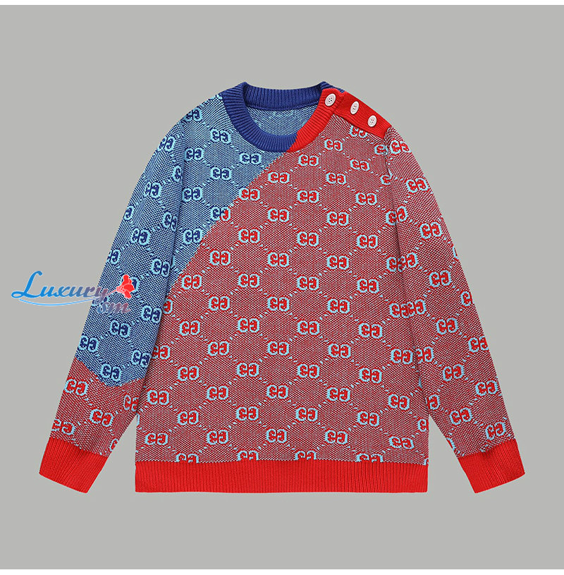 GUCCI-012415 구찌 블루/레드 니트 코튼 GG 스웨터 남여공용
