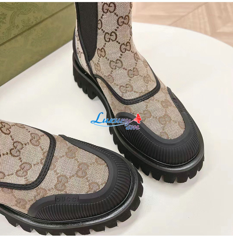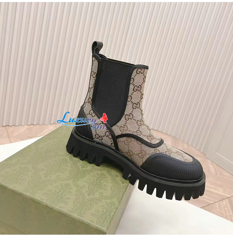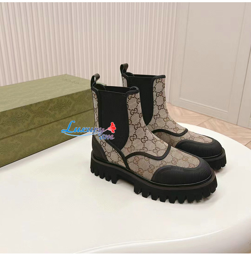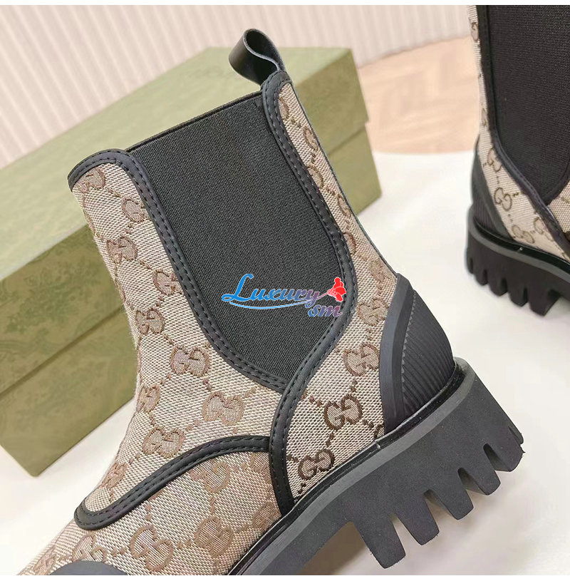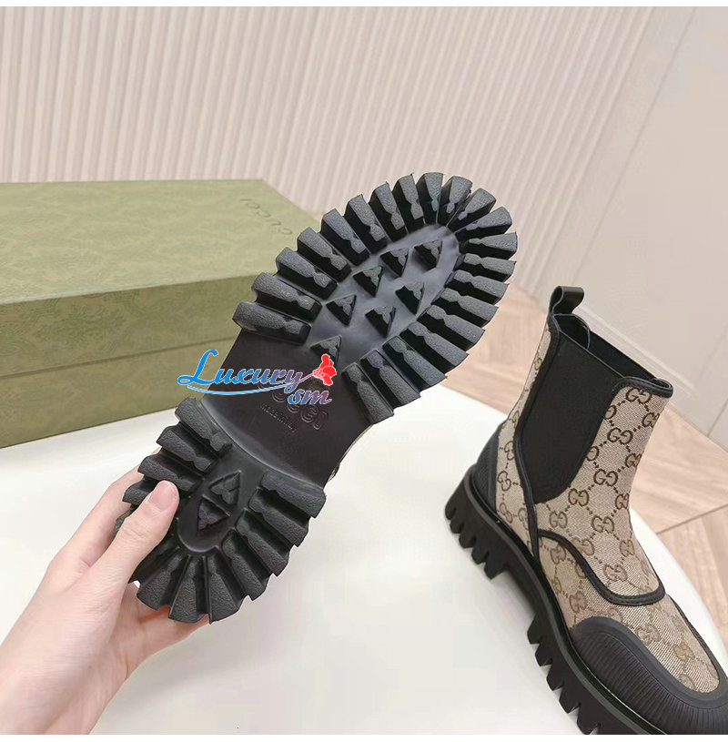 GUCCI-751711 9751 구찌 베이지/블랙 GG 캔버스 앵클 부츠 여성용