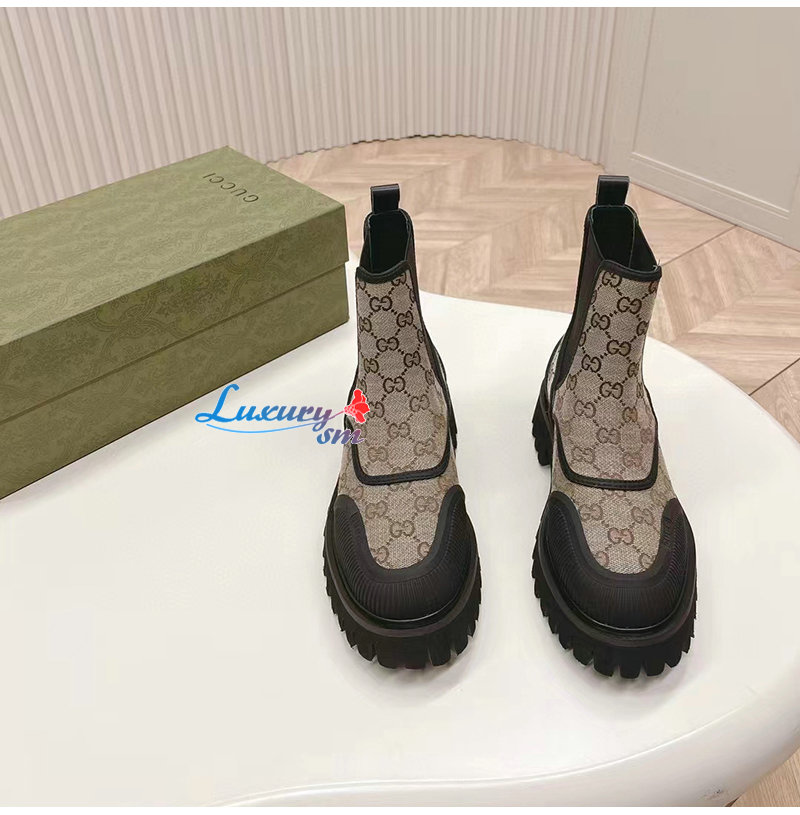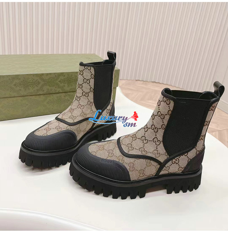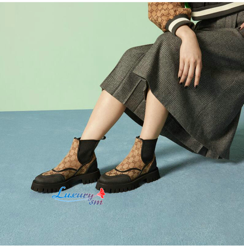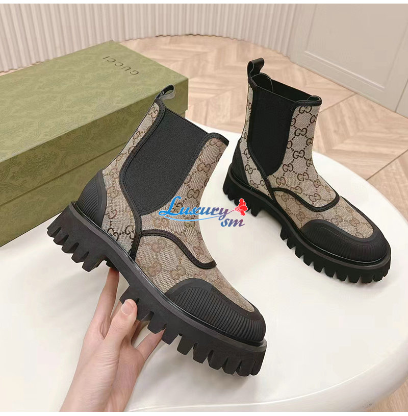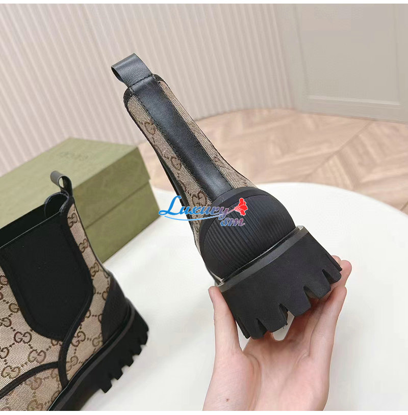 GUCCI-751711 9751 구찌 베이지/블랙 GG 캔버스 앵클 부츠 여성용
