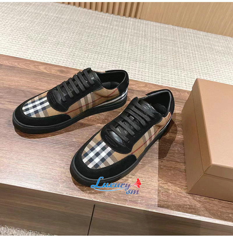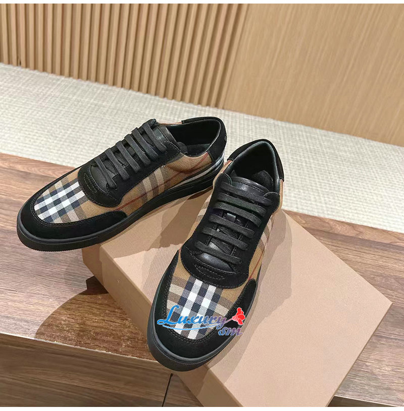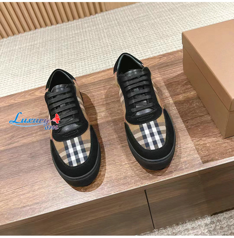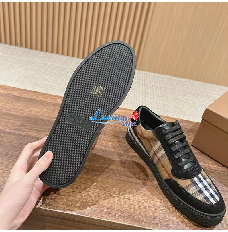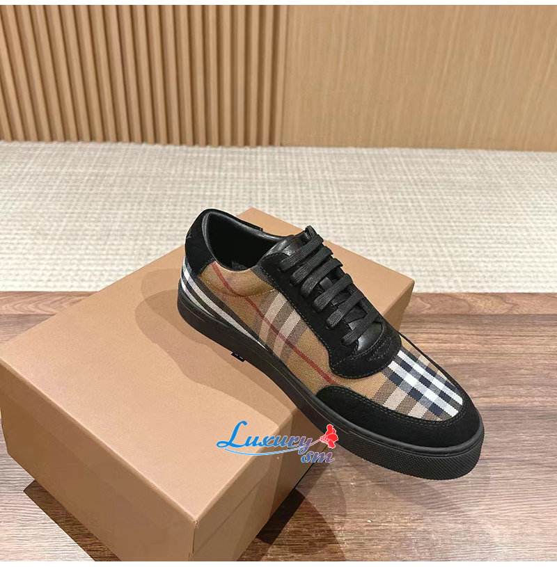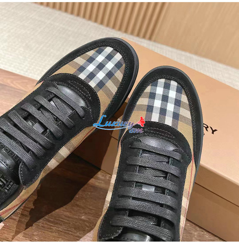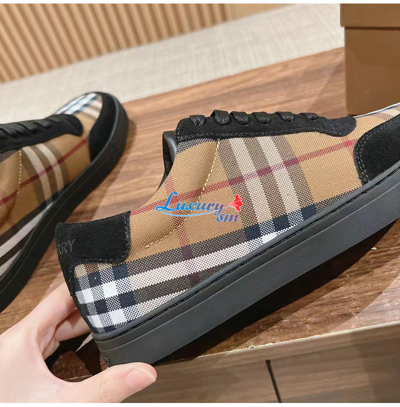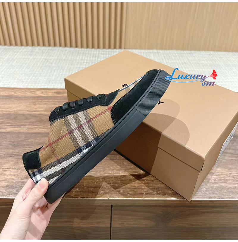BURBERRY-80617561 버버리 브라운 빈티지 체크 코튼 스웨이드 스니커즈 남성용