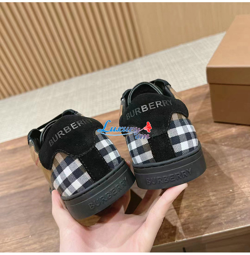 로 구성된 로우롭 스니커즈 버버리 엠보싱 로고가