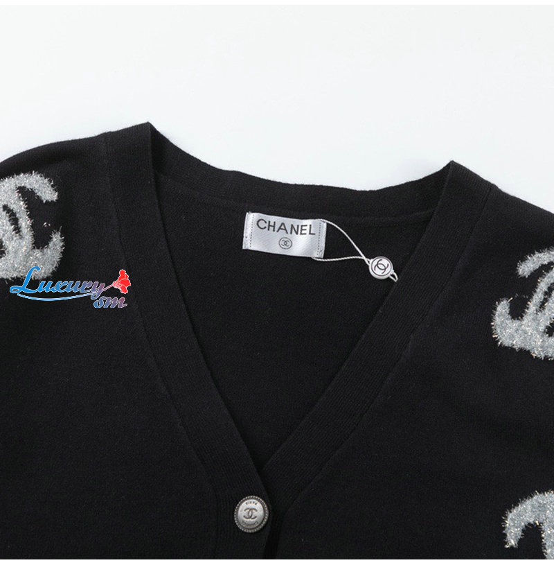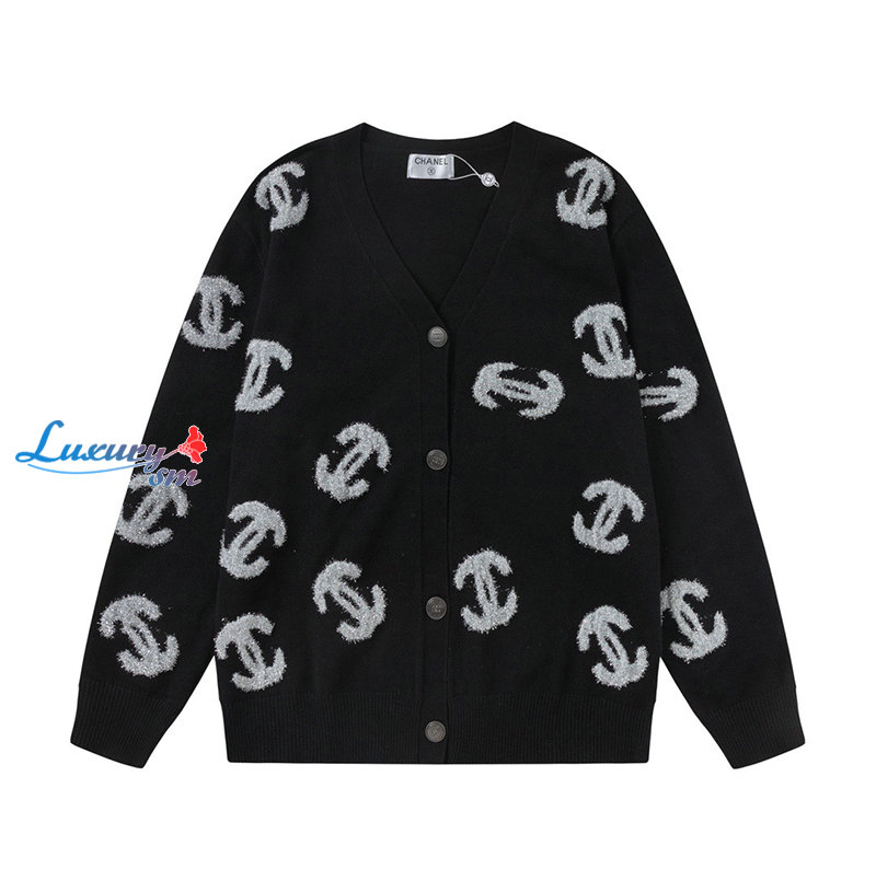 CHANEL-01263 샤넬 블랙 CC 로고 아플리케 장식 가디건 남여공용