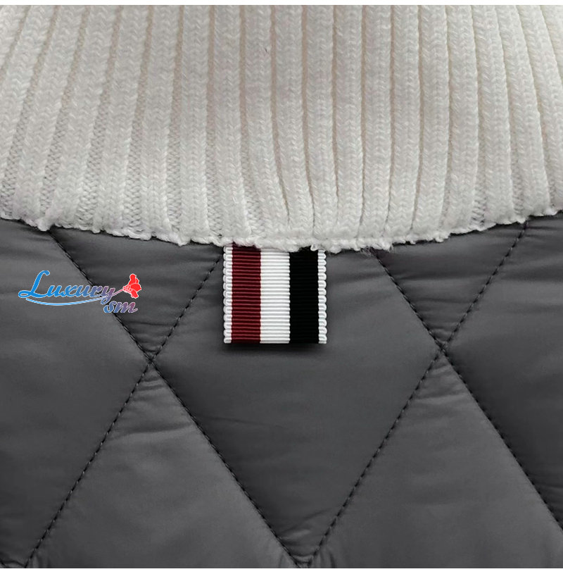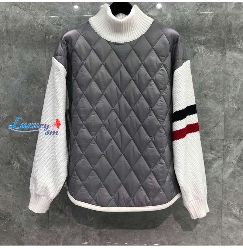 THOM BROWNE-012610 톰 브라운 그레이/화이트 퀄팅 하이넥 스웨터 남성용