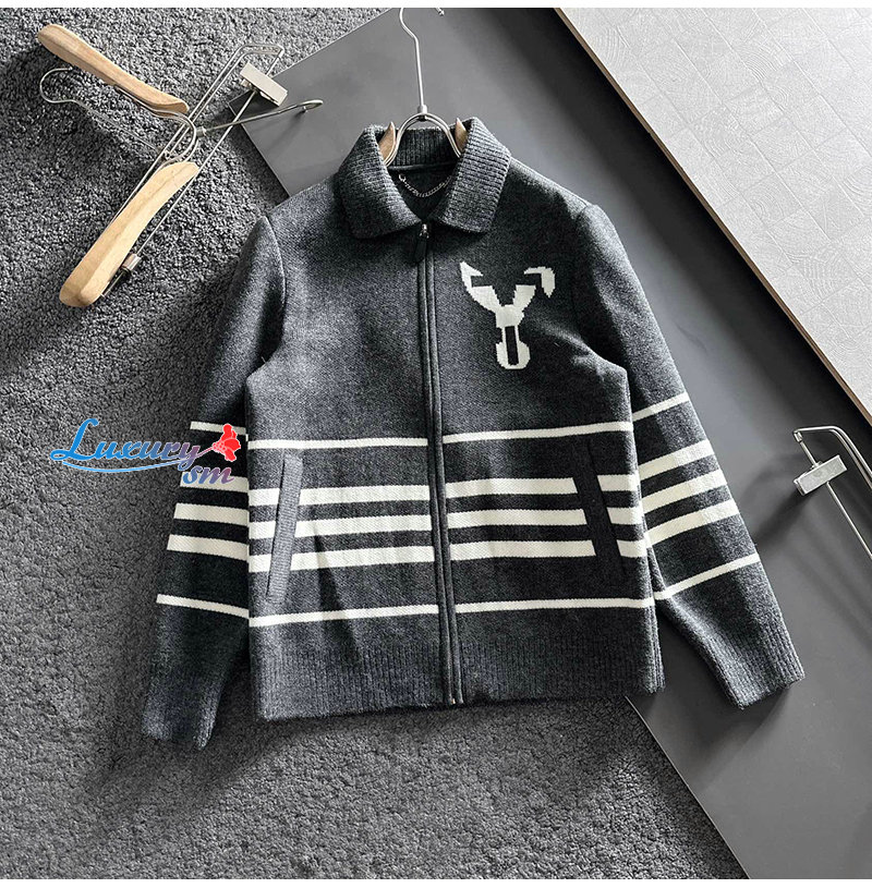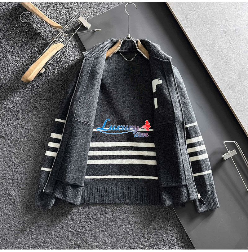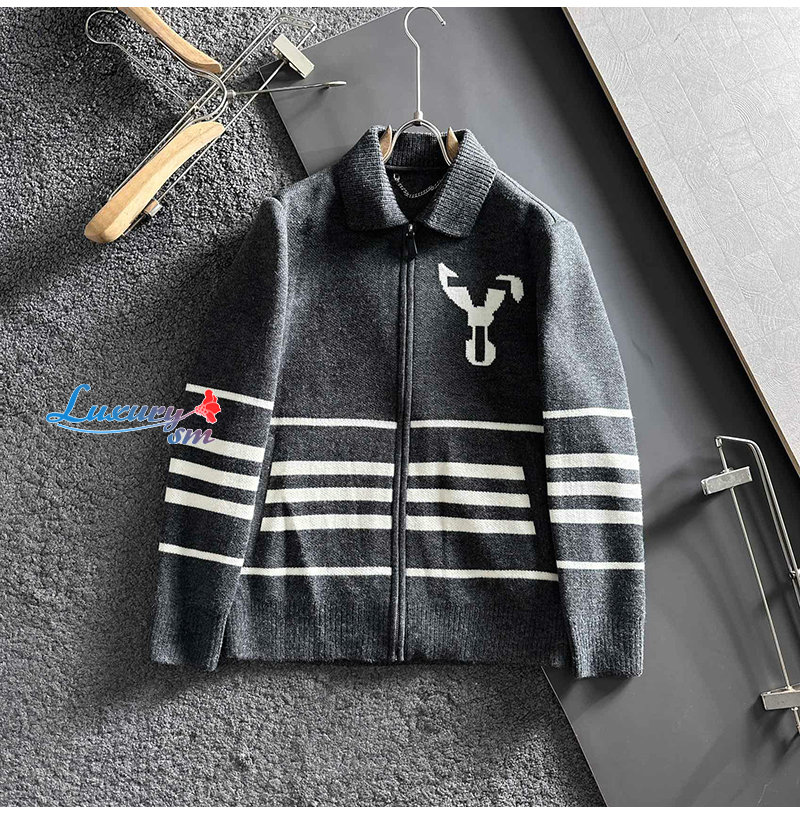 BURBERRY-012614 버버리 다크 그레이 스트라이프 장식 가디건 남성용