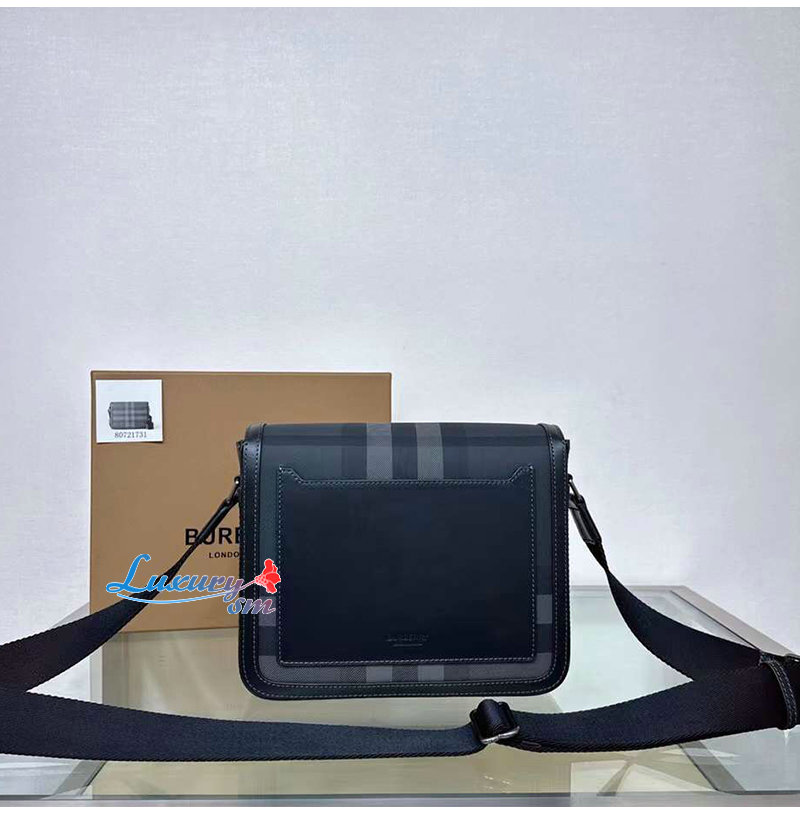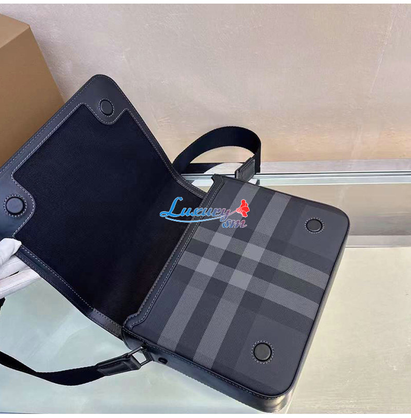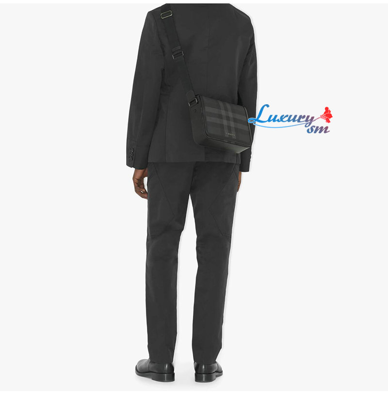 체크가 돋보이는 구조적인 메신저 백.