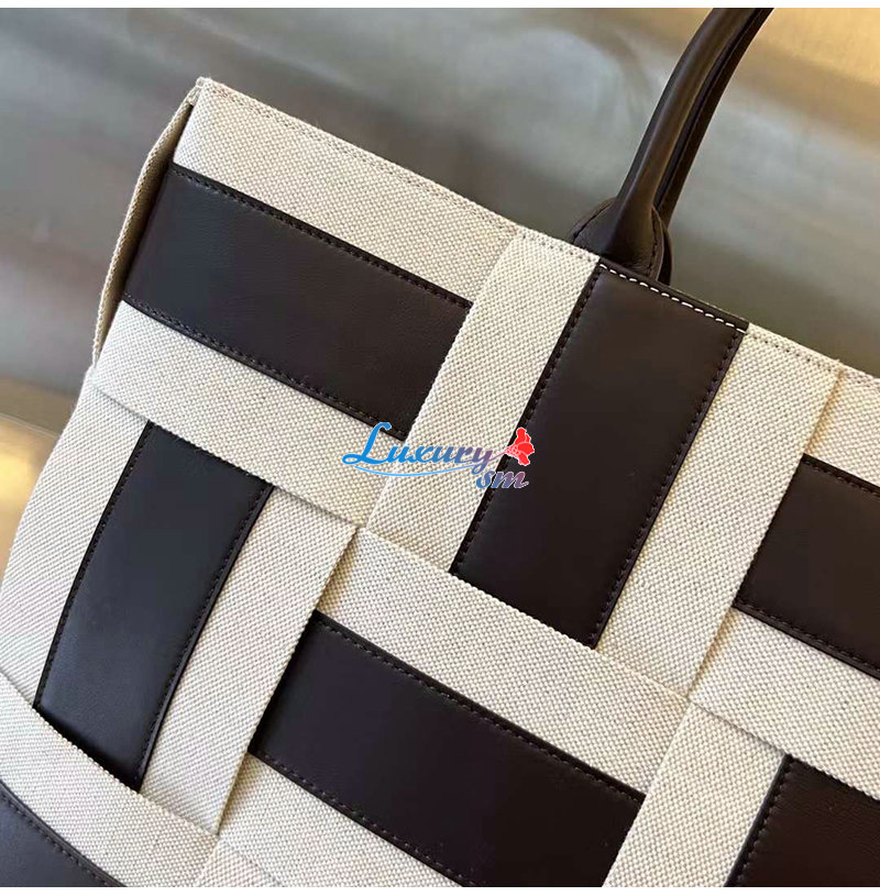 가죽 및 캔버스 혼방 소재를 인트레치오 위빙