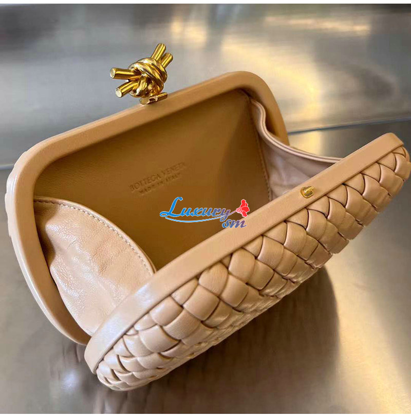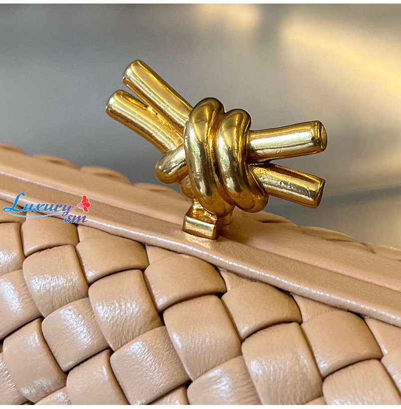 BOTTEGA VENET-202031 보테가 베네타 오로 브루치아토 인트레치오 파일 므와레 스트레치 놋 클러치 가격 : 360,000원
