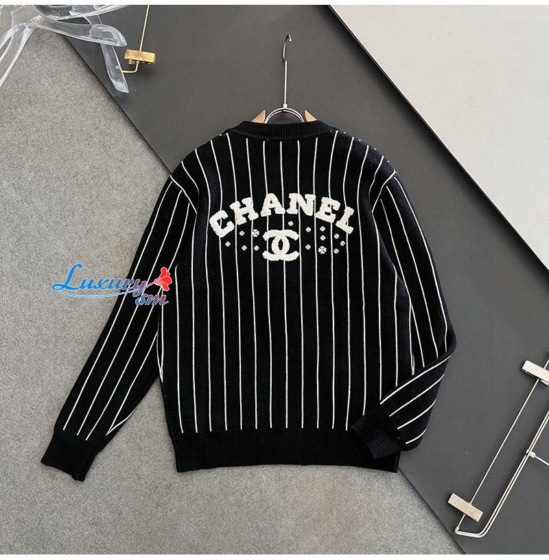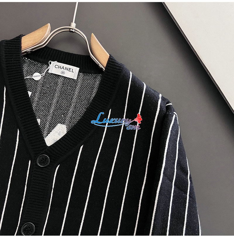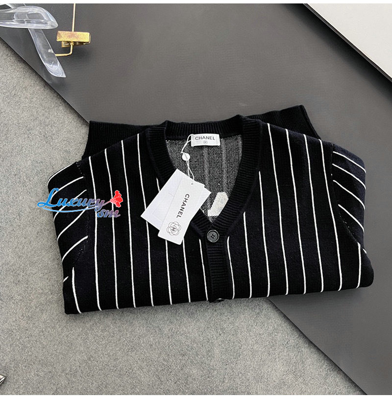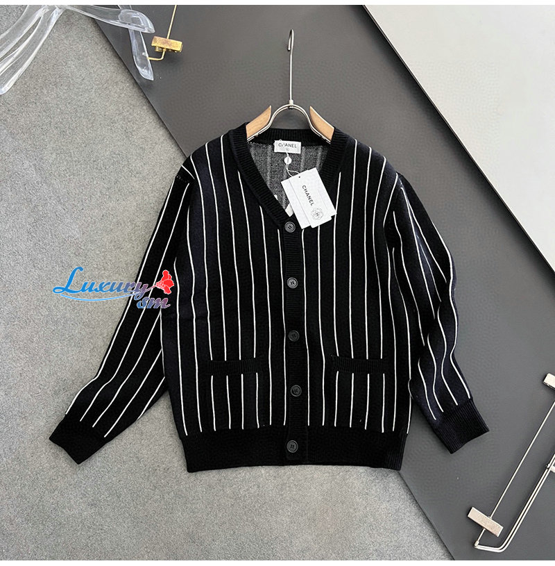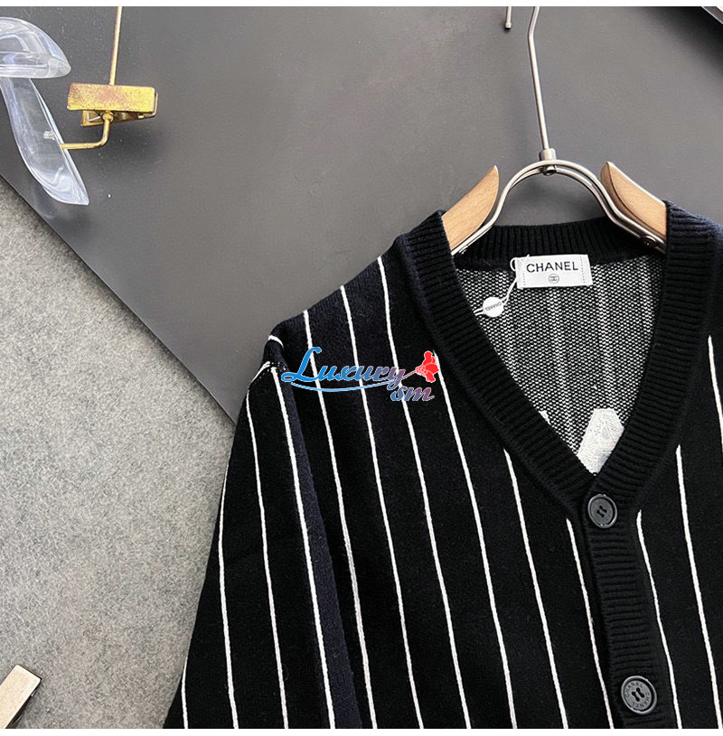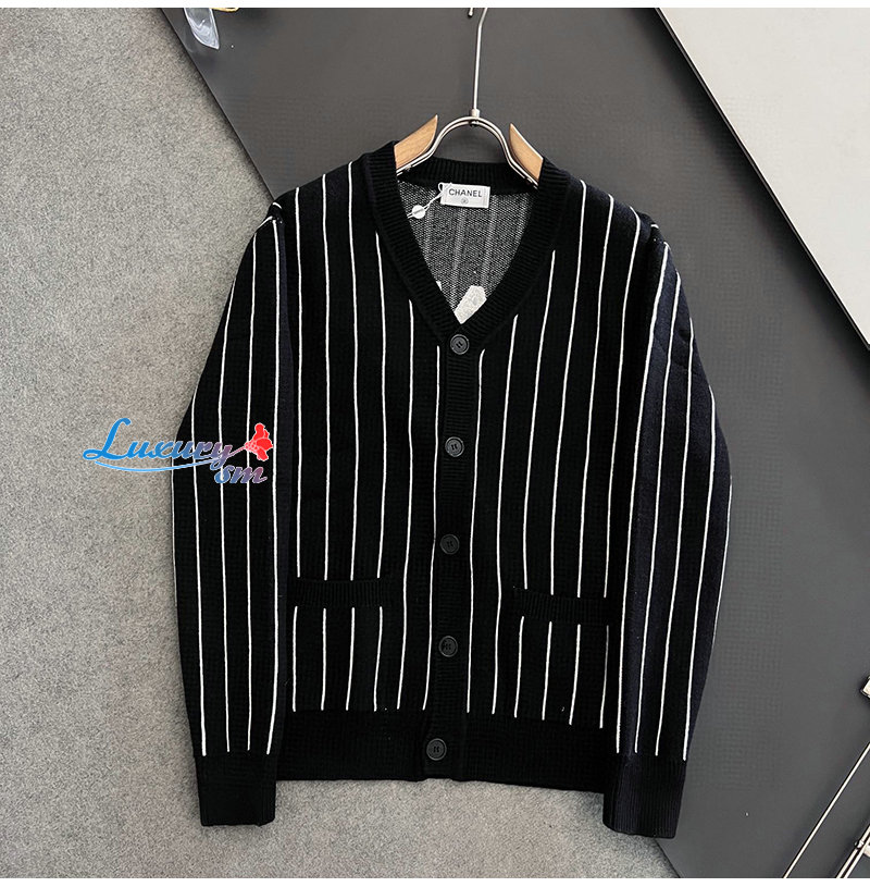 CHANEL-030618 샤넬 블랙 아플리케 장식 스트라이프 가디건 남성용
