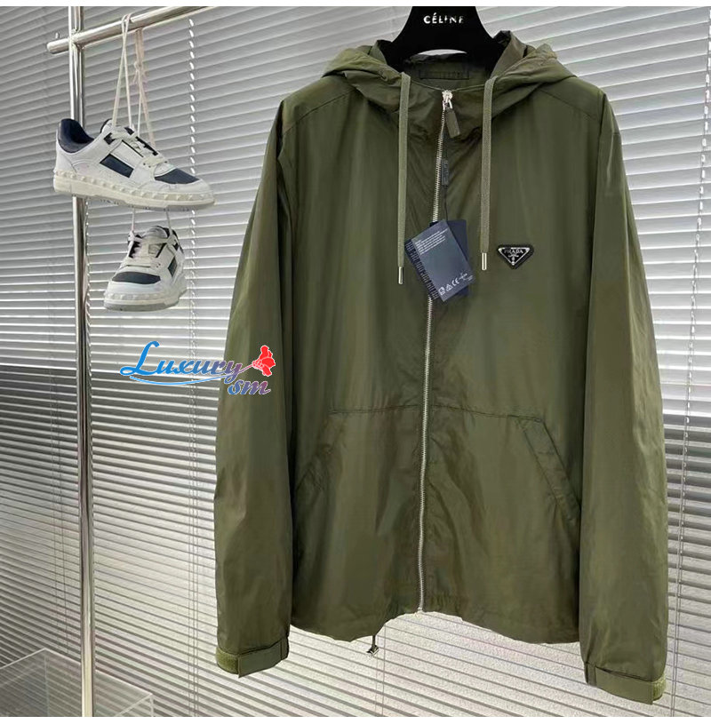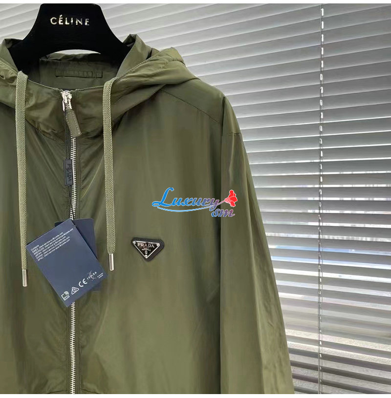 PRADA-03108 프라다 그린 트라이앵글 로고 바람막이 후드 재킷 남성용