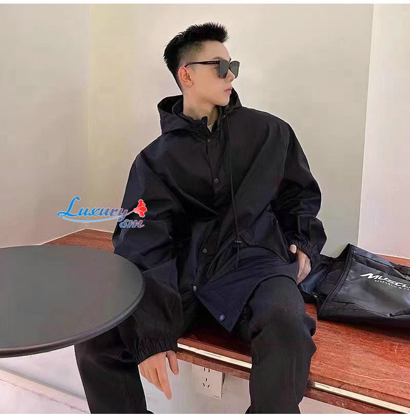 BALENCIAGA-031015 발렌시아가 블랙 프린트 장식 바람막이 후드 재킷 남성용