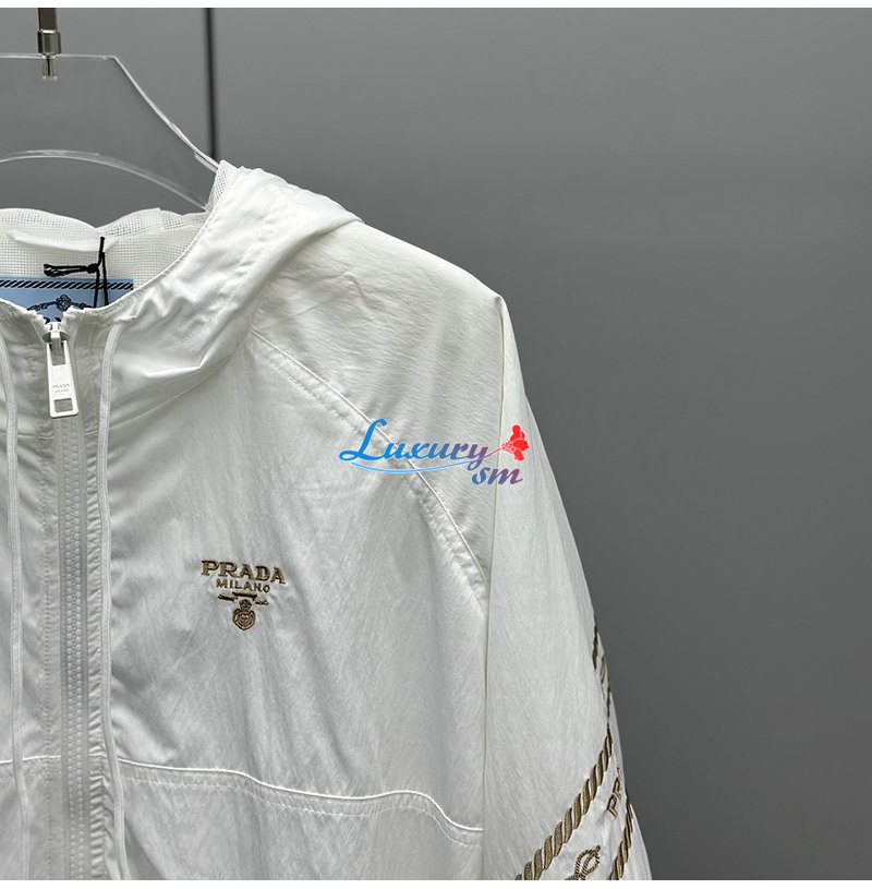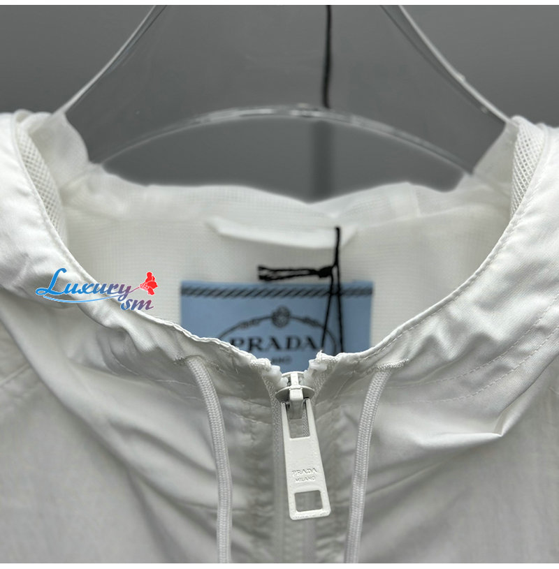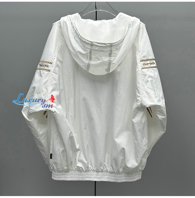 PRADA-031019 프라다 화이트 아플리케 장식 바람막이 후드 재킷 여성용