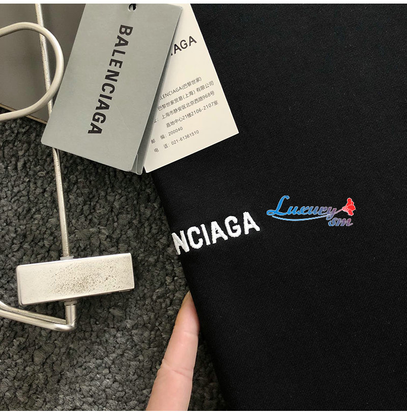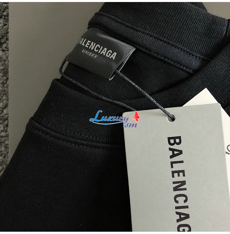 BALENCIAGA-03145 발렌시아가 블랙 아플리케 장식 티셔츠 남성용