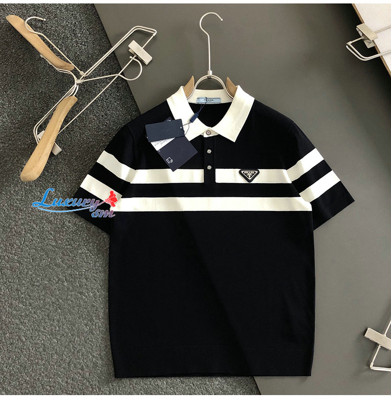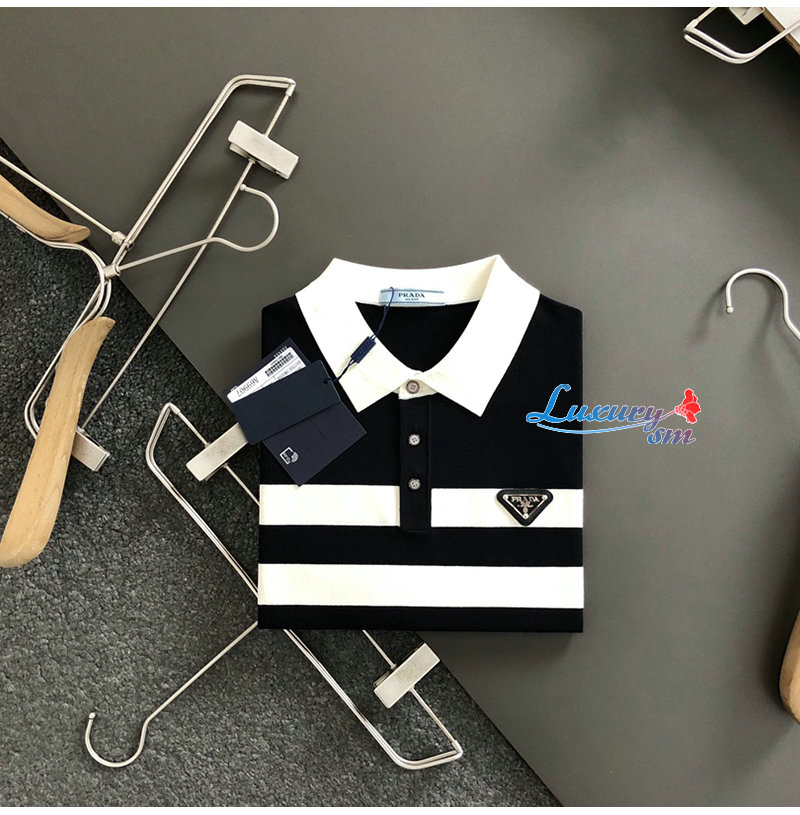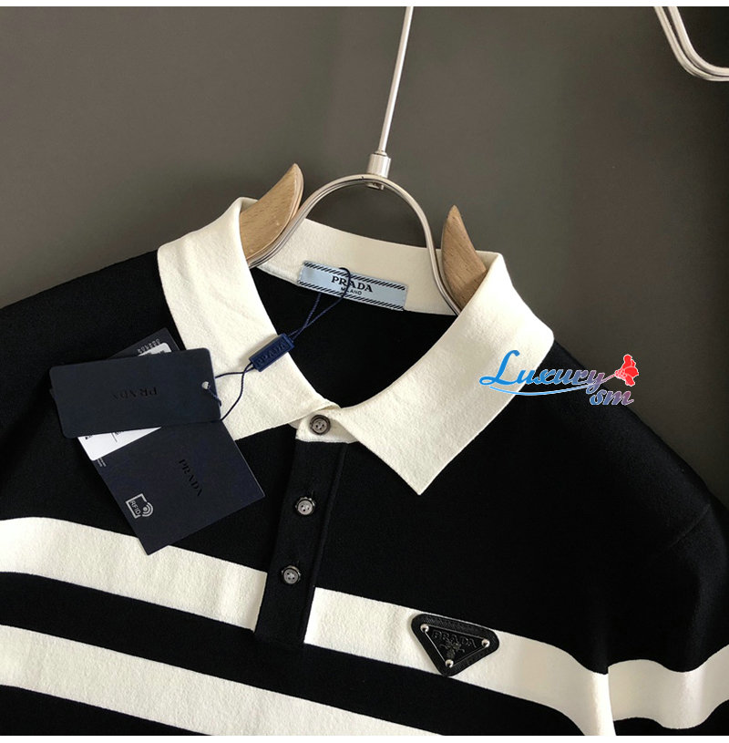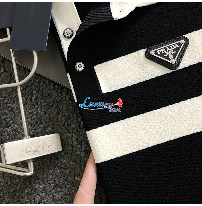 PRADA-03148 프라다 블랙/화이트 스트라이프 폴로 티셔츠 남성용