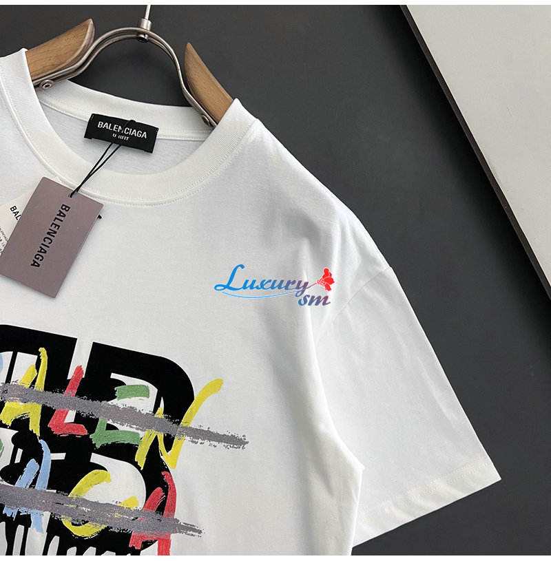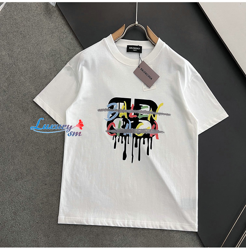 BALENCIAGA-031417 발렌시아가 화이트 프린트 장식 티셔츠 남성용