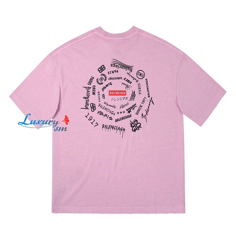 BALENCIAGA-031714 발렌시아가 핑크 프린트 장식 티셔츠 남여공용