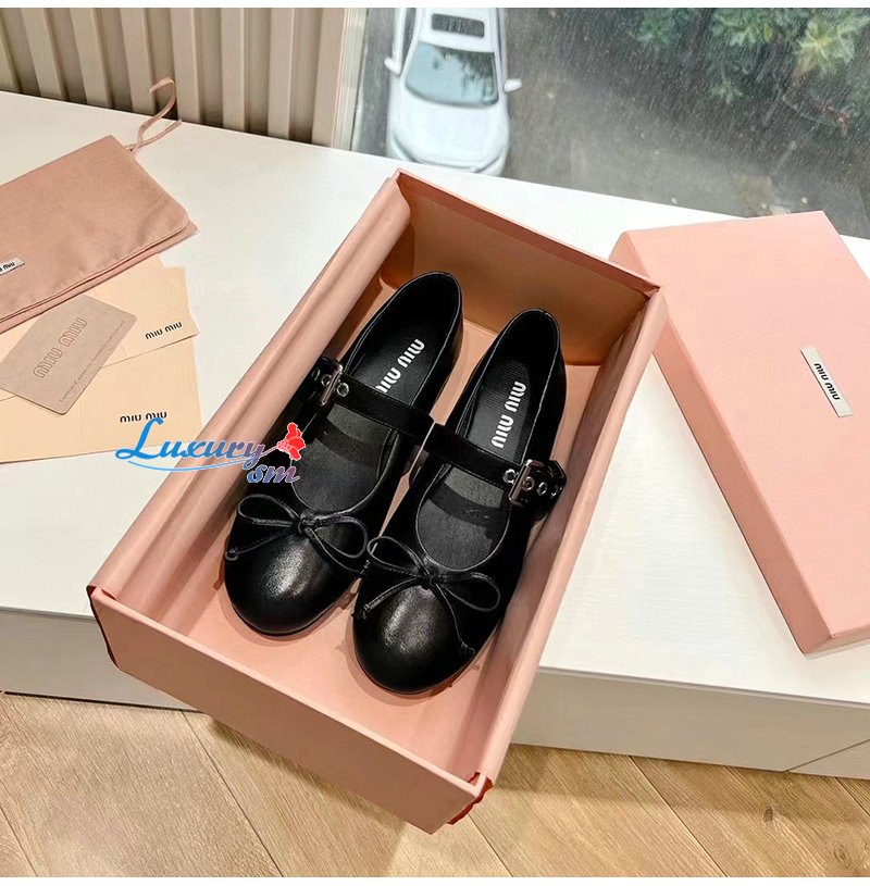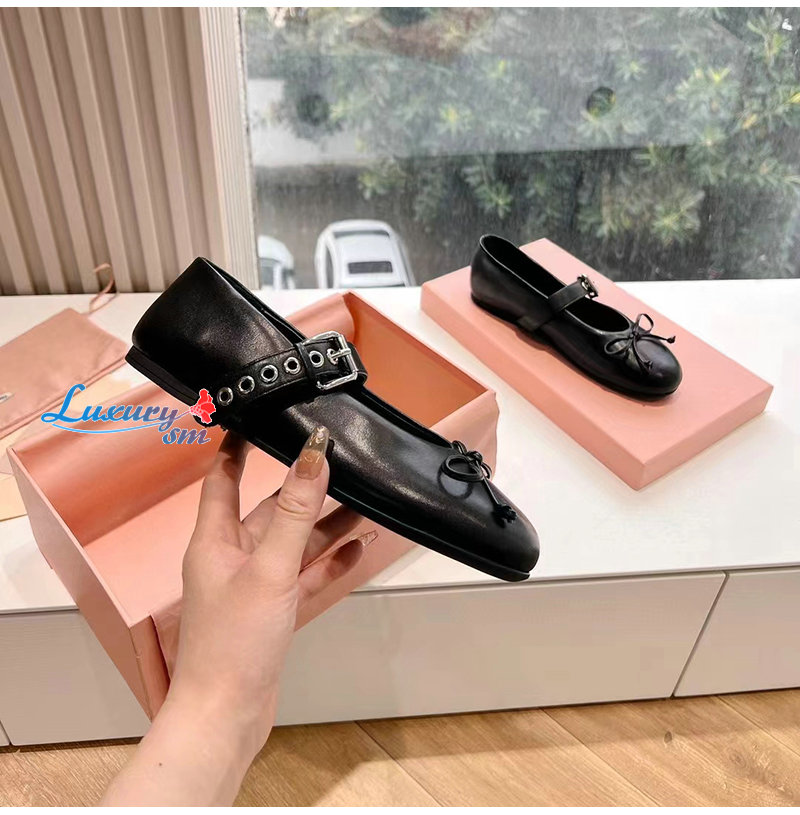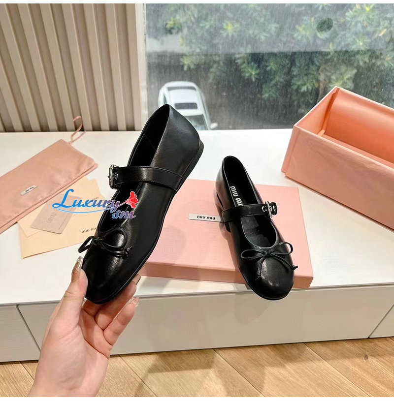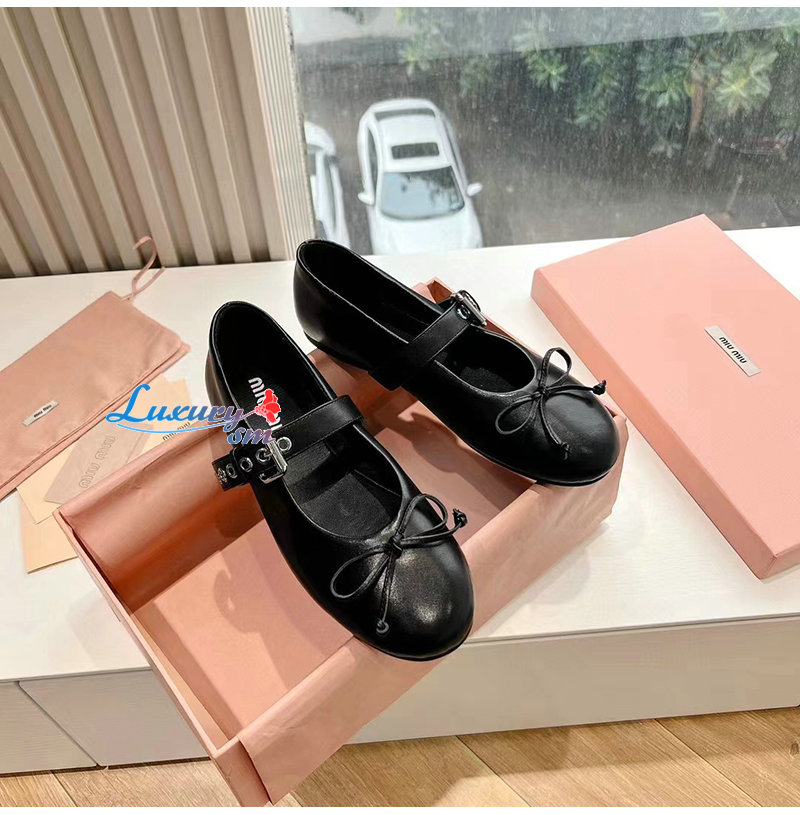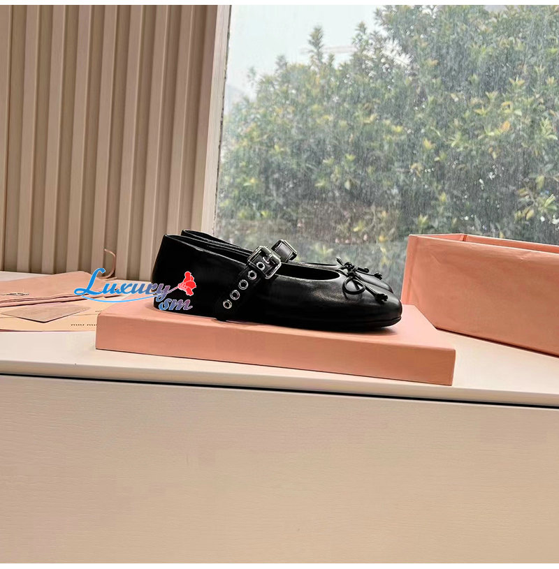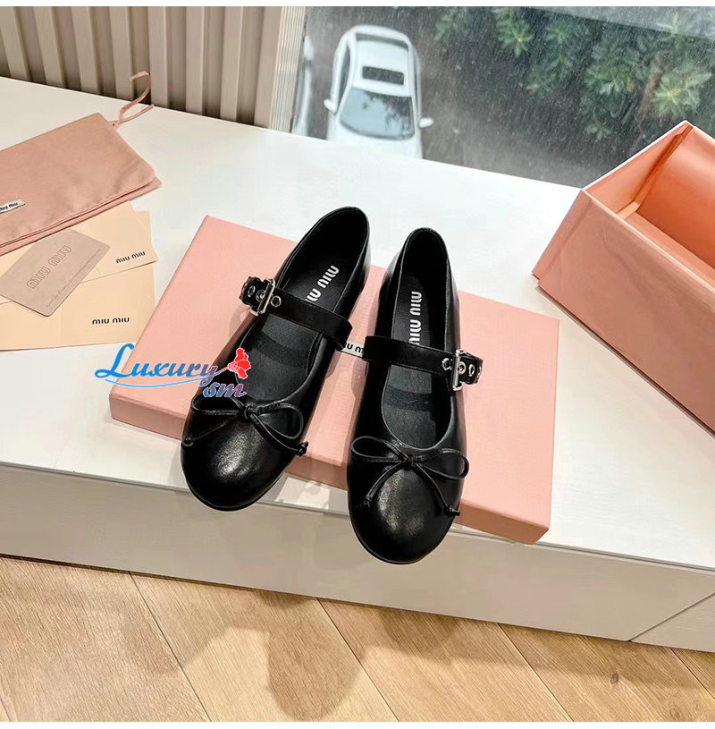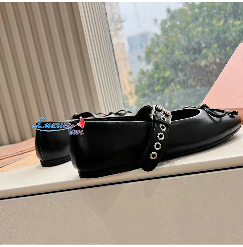 MIUMIU-5F210E 미우미우 블랙 가죽 발레리나 슈즈