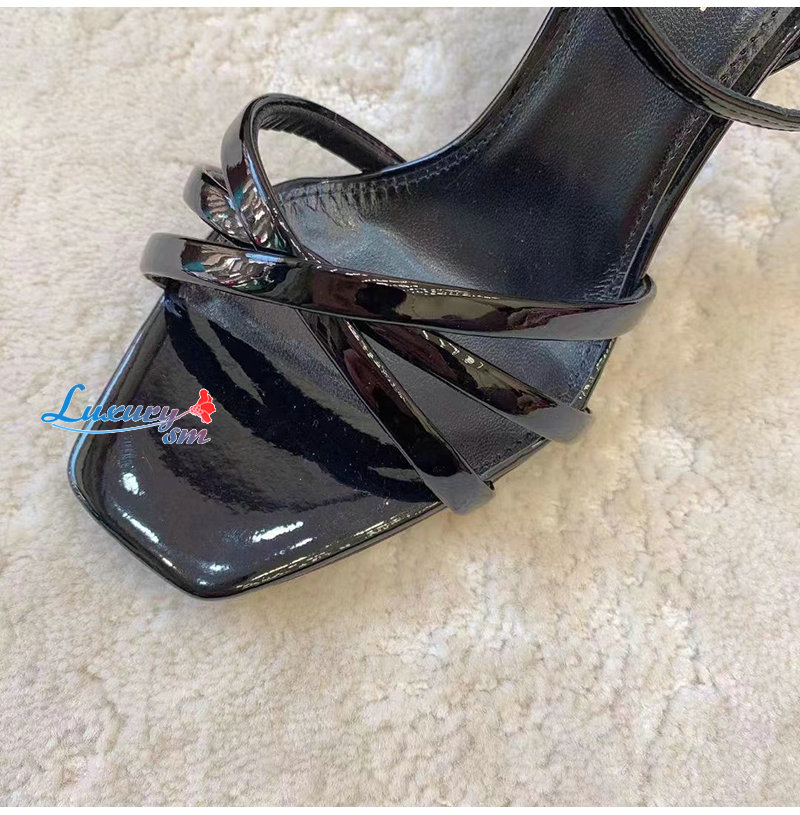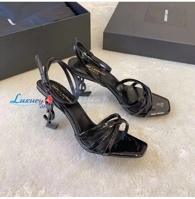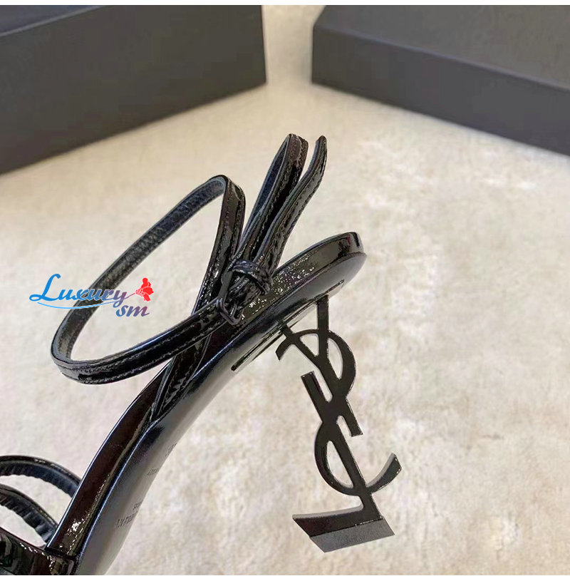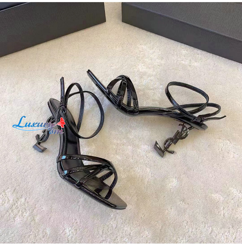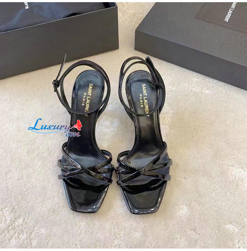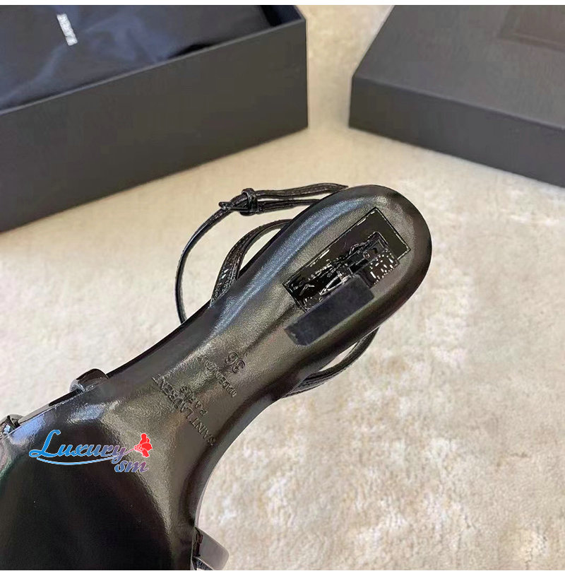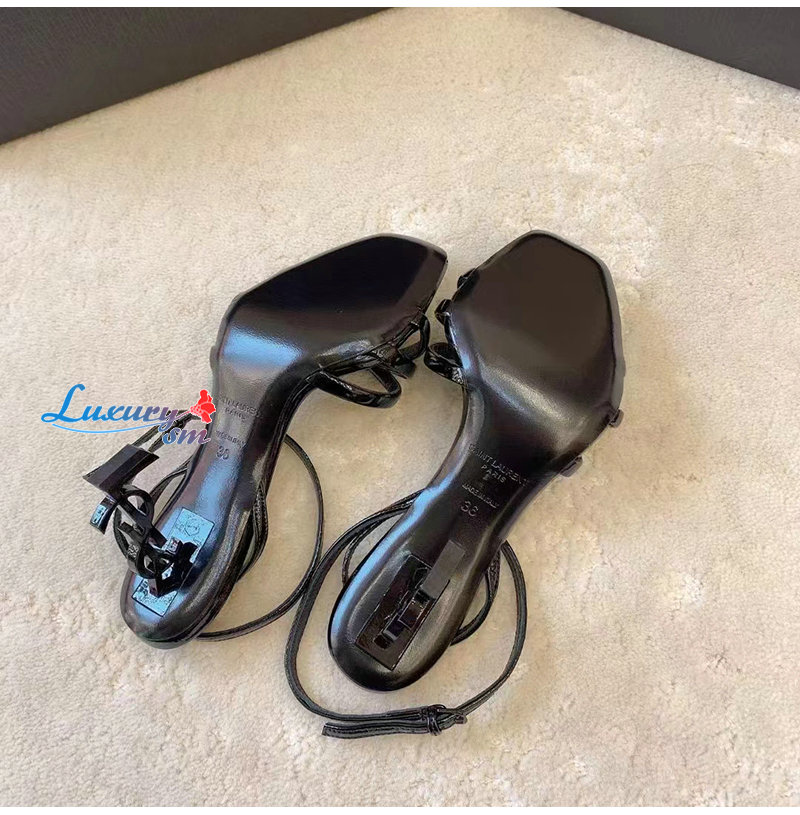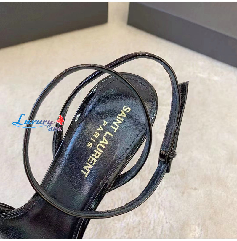 SAINT LAURENT-782840 생 로랑 블랙 글레이즈드 가죽 OPYUM 샌들