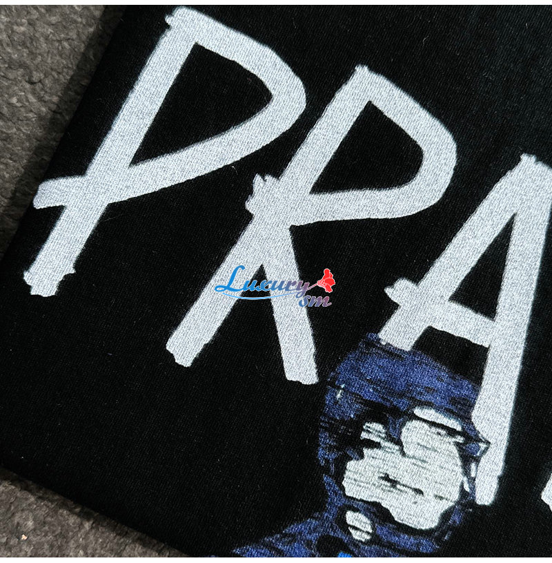PRADA-03197 프라다 블랙 프린트 장식 티셔츠