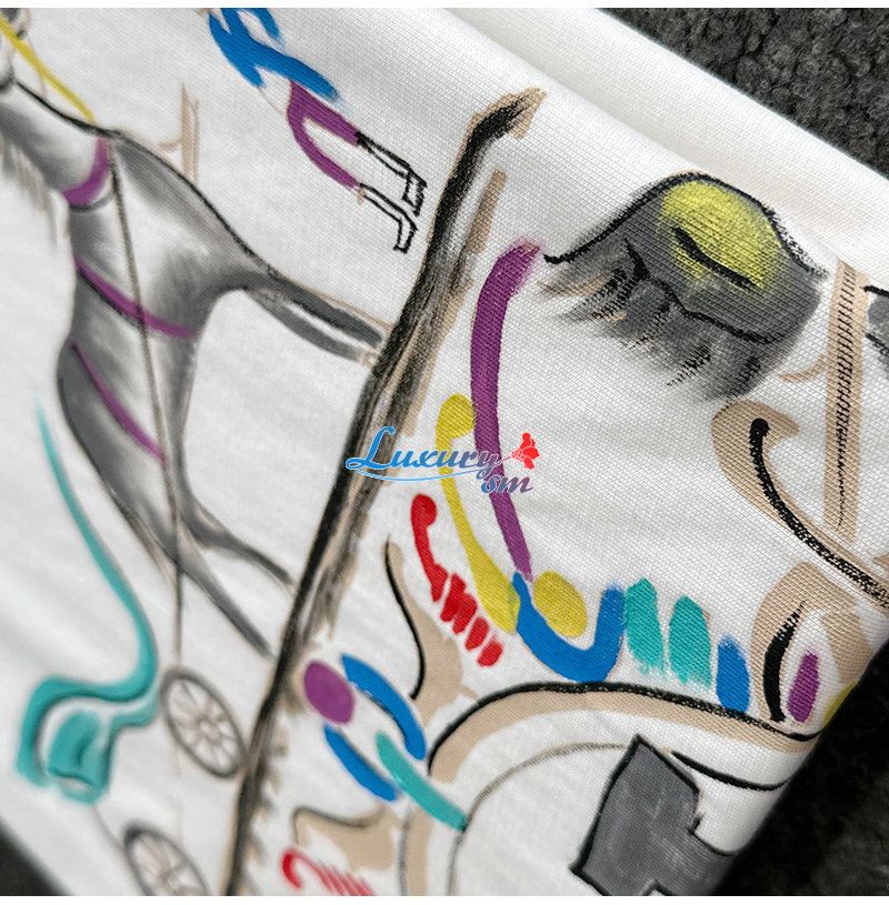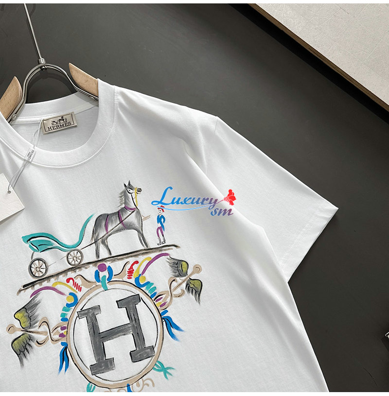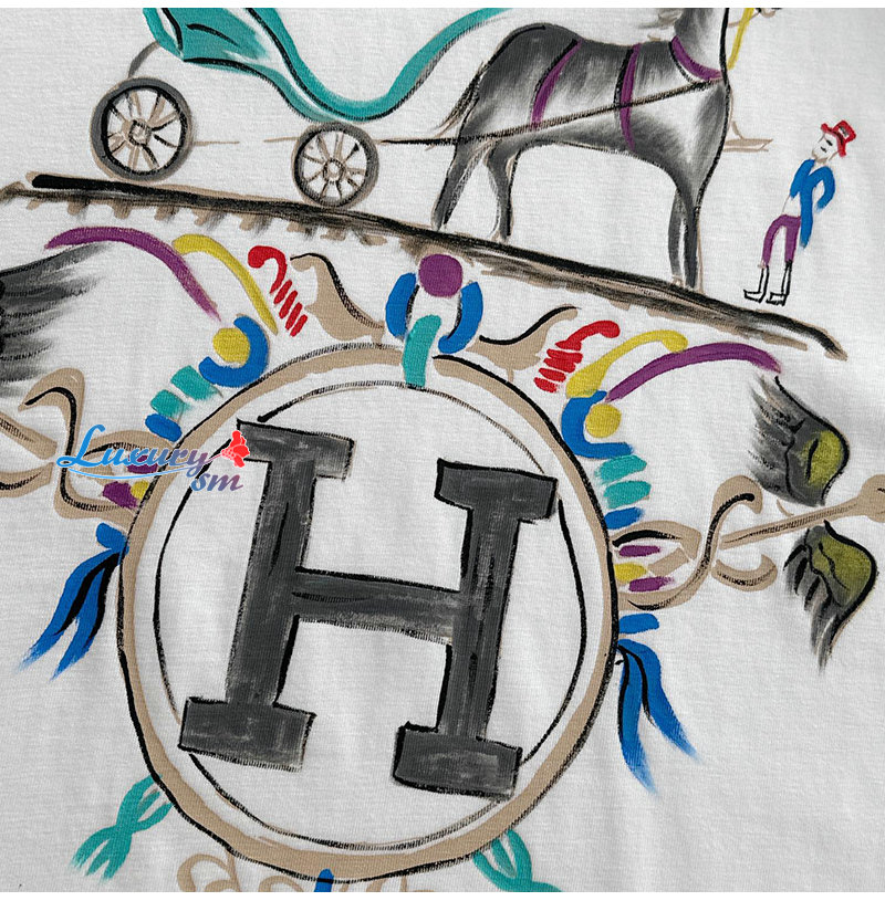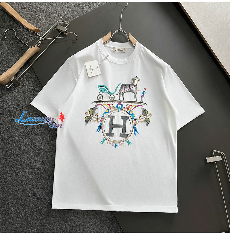 HERMES-03199 에르메스 화이트 프린트 장식 티셔츠 남성용