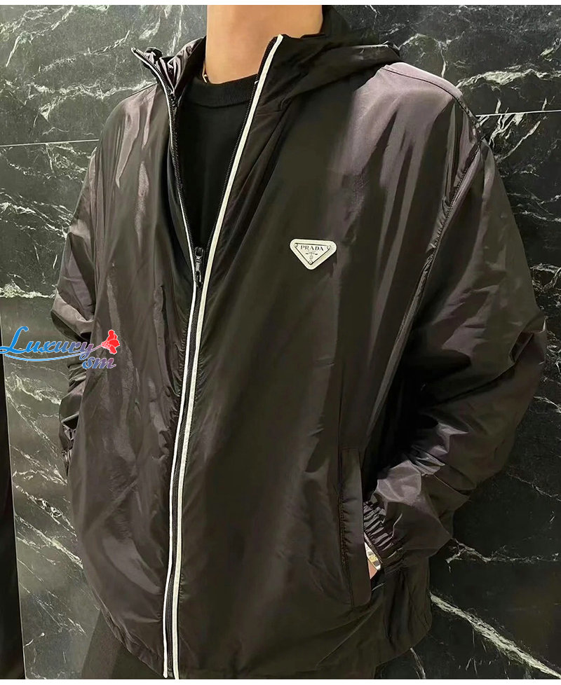 PRADA-032213 프라다 블랙 트라이앵글 로고 바람막이 후드 재킷 남성용