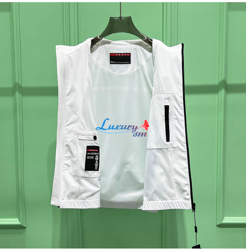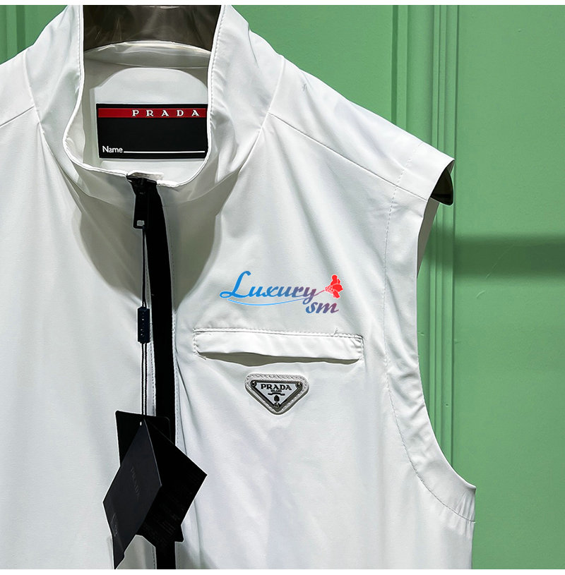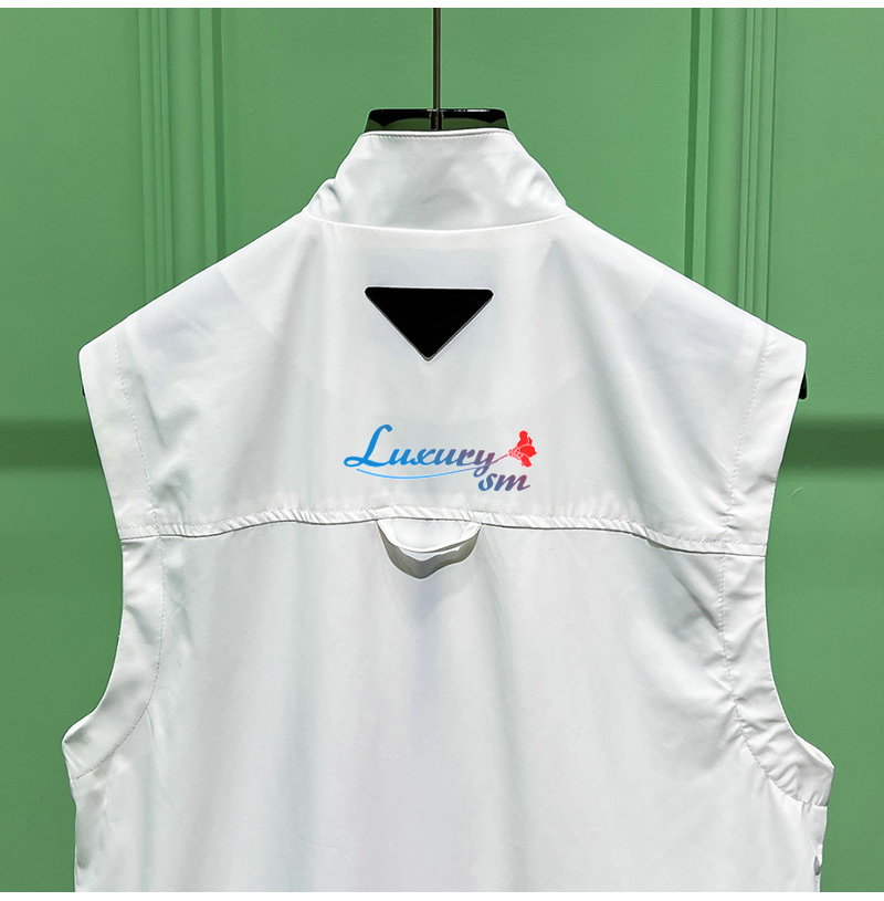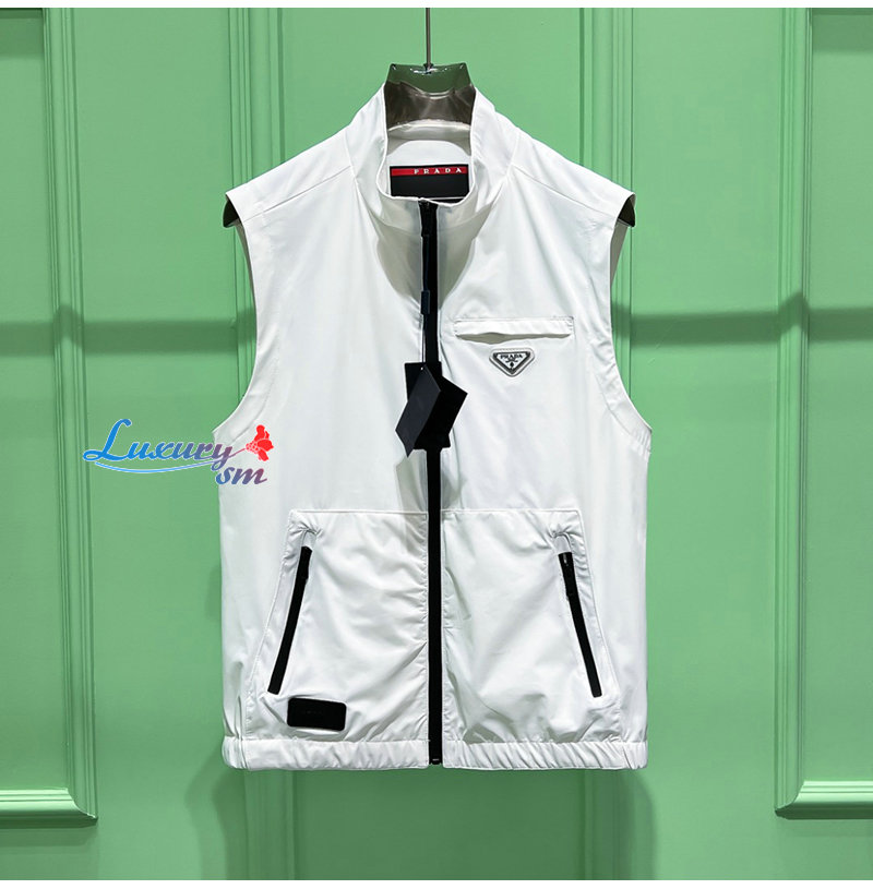 PRADA-032314 프라다 화이트 트라이앵글 로고 바람막이 조끼 남여공용