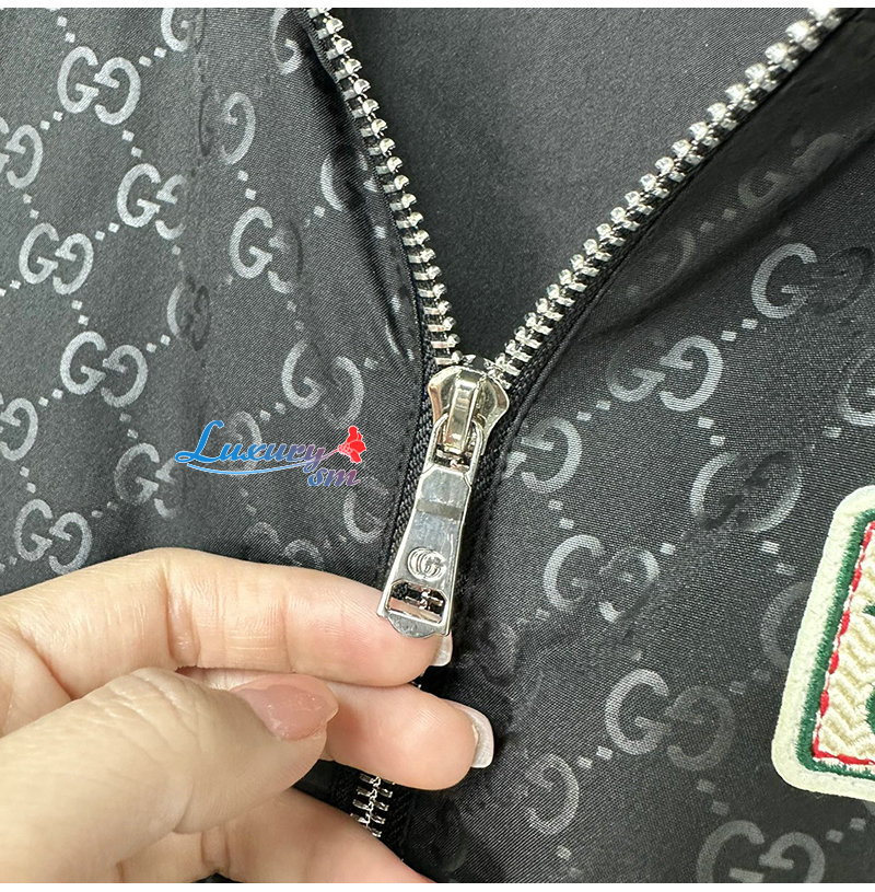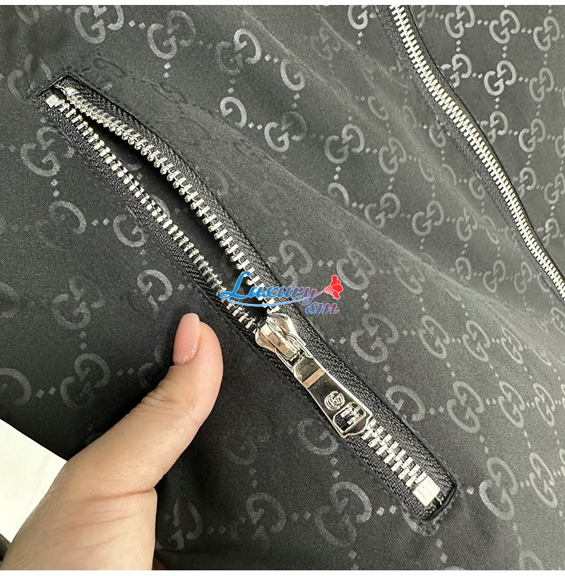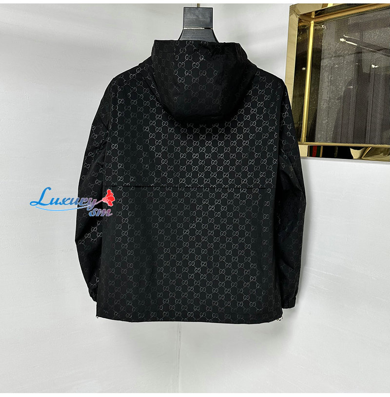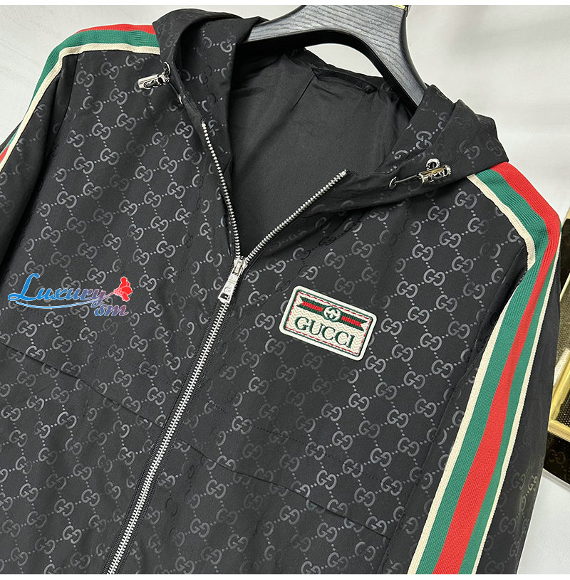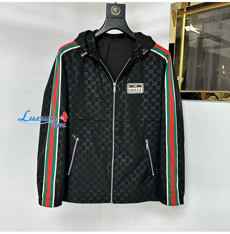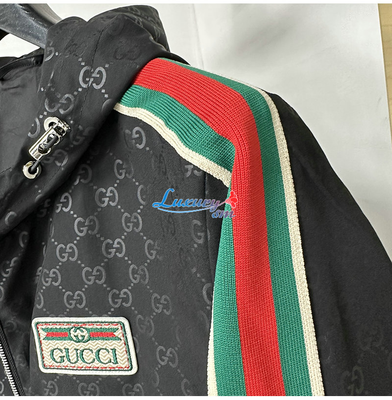 GUCCI-03226 구찌 블랙 Web 스트라이프 장식 GG 바람막이 후드 재킷 남성용